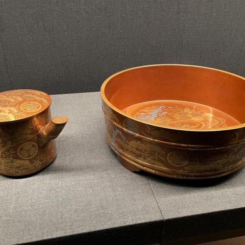 梨子地水草蒔絵大盥/湯桶