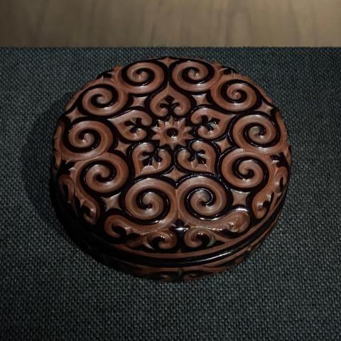 黒屈輪唐花文香合