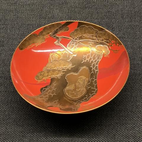 老松尉姥鶴亀蒔絵三組盃/真塗花月台