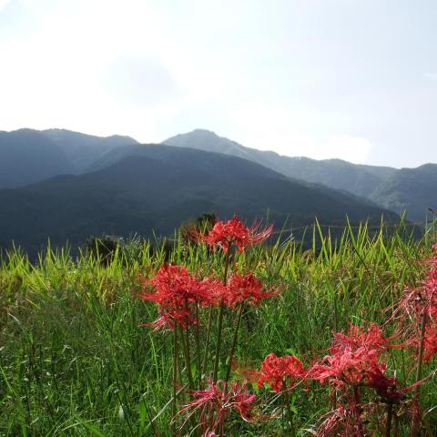 藤原京のコスモス畑から畝傍山、大和葛城山