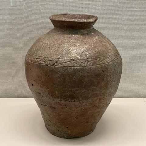 檜垣彫文壺 信楽 室町 高34.4