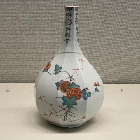 色絵菊花文八角瓶 有田(柿右衛門) 江戸中期
