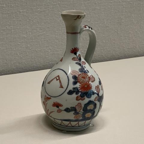 色絵ローマ字入把手瓶 有田(伊万里) 江戸中期