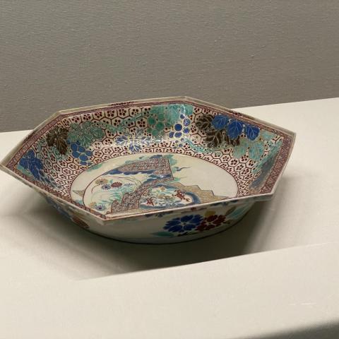 色絵扇面文六角鉢 讃岐(理平焼) 江戸中期