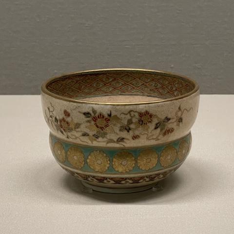 色絵金彩菊草花文茶碗 薩摩 江戸後期