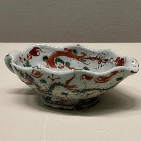 赤絵龍文柏葉形筆洗 京都 奥田頴川作 江戸後期