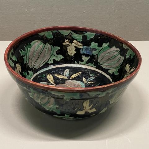 黒地色絵瓜桃文鉢 金沢(春日山窯)青木木米作「金城精 製」銘 文化4-5年(1807-1808) 江戸後期