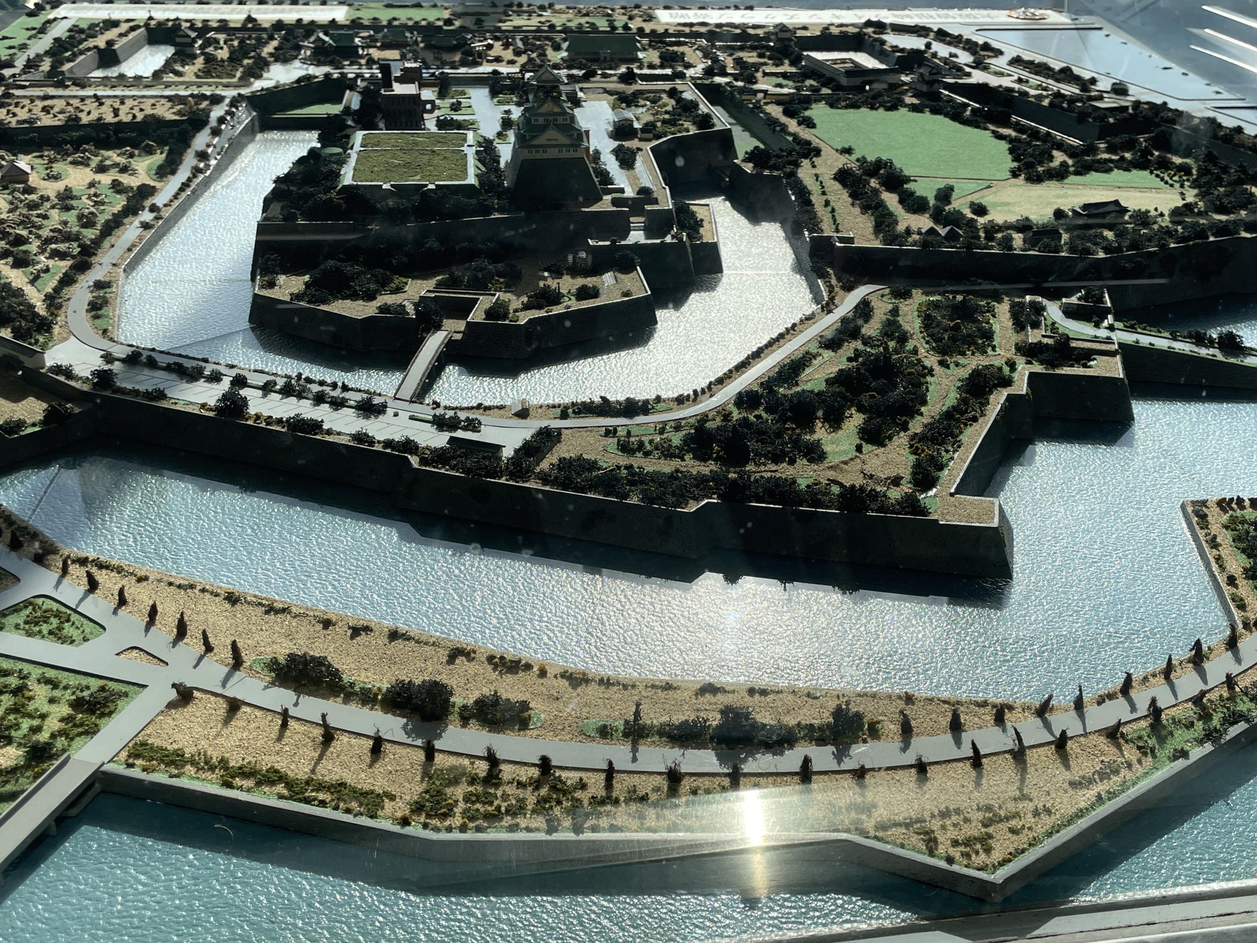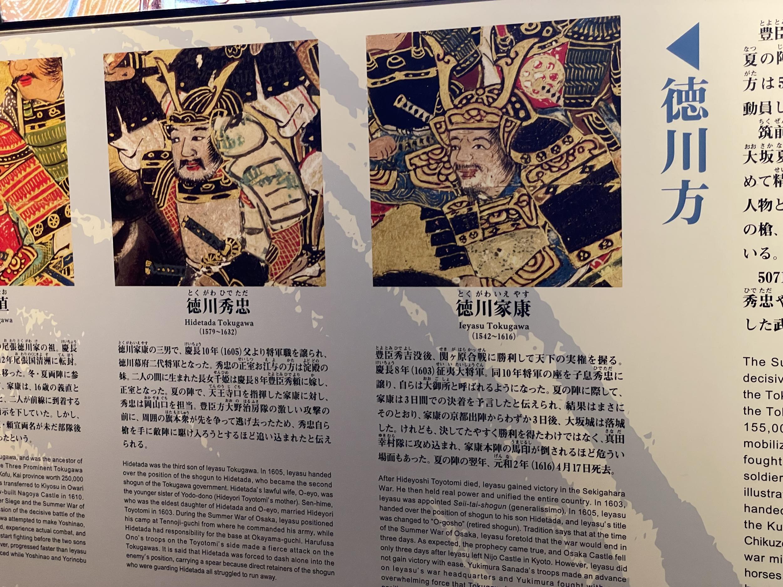 エレベーターで5階へ上がると、大坂夏の陣図屏風の世界。大坂の陣配置図のパネルから、夏の陣では濠が埋められてしまい真田丸も無くなっていて、よくぞこれで豊臣方が戦ったものと思わざるを得ない。