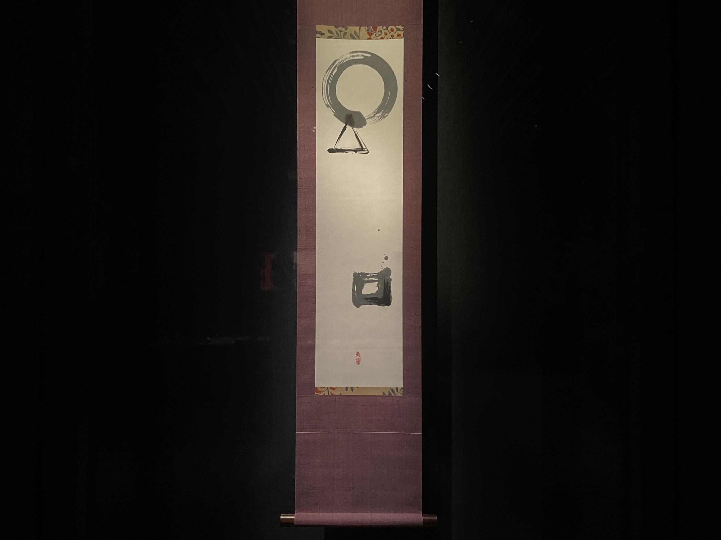 中塚翠涛「◯△□」は上掲の銘文億と並べるべく、本阿弥光悦の書を臨書し、器の形や釉薬の景色を書で表現すべく制作されたらしい。◯はコンパスで描いたような円、筆で一気にこれを書くのはハンパないです。