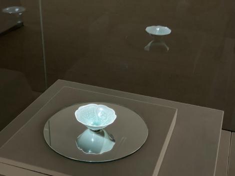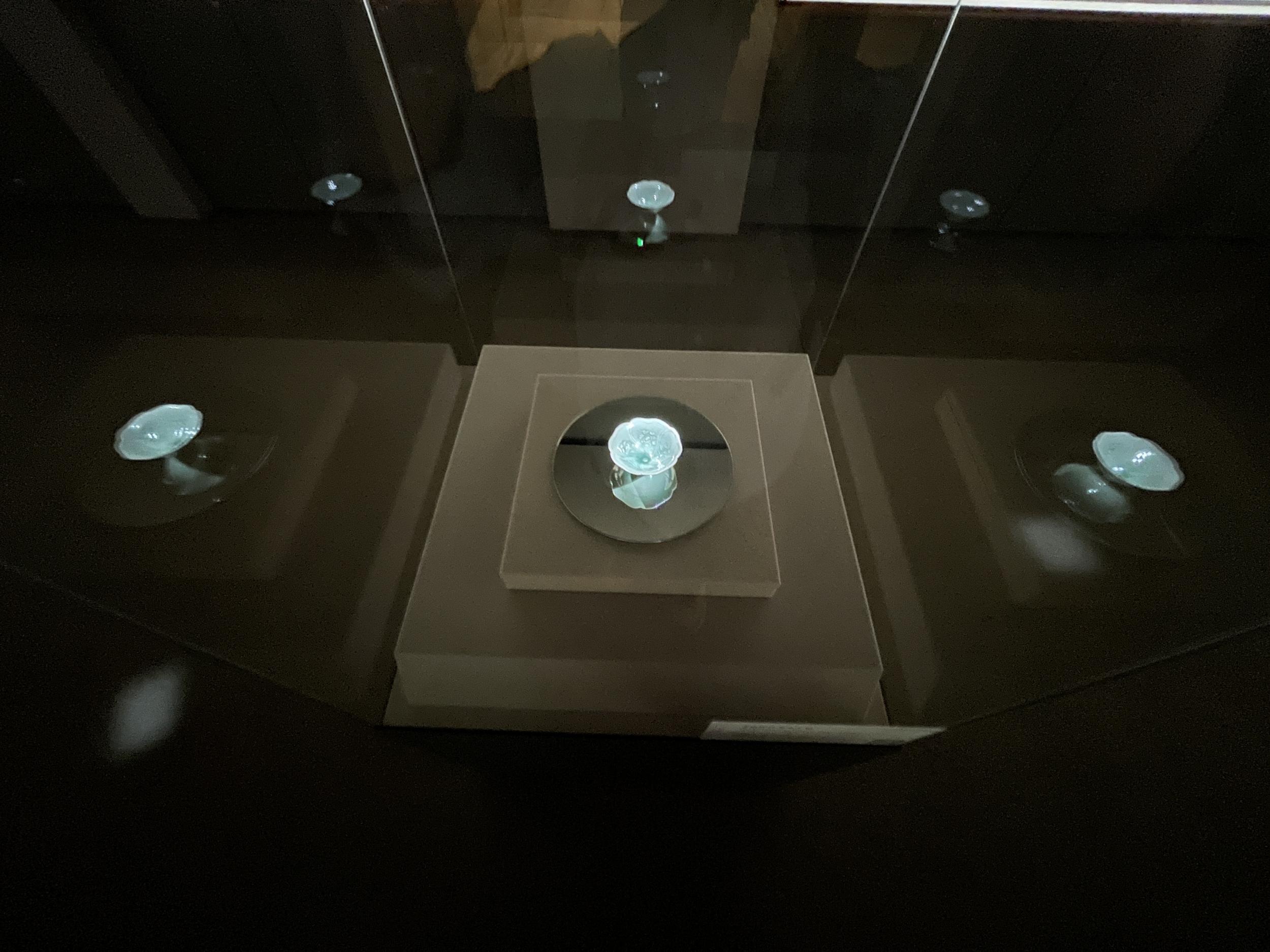 展示ケースに肘をのせて間近で鑑賞できる棚があるのはとても快適に鑑賞でき、1点あるいは数点ずつ、鏡や白い板に載せての展示も美術品を引き立てています。