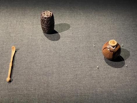 閉館のアナウンスが流れてきました。急いで鼻煙壷をチェック。もう3回目なので3つだけクローズアップ。いずれも5cmほどの嗅ぎタバコ用の小さな壺(明代)です。