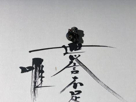 座右の銘の文字の森でフィギュアたちがかくれんぼするような世界を演出すべく、新たに書き出したものと、中塚さん自身のコメントが会場のQRから読める解説にありました。後漢の崔子玉、江戸時代の岩間政盧、令和の中塚翠涛のなんとも奥深いコラボに感銘、何重にも伏線が仕込まれた映画を見るような、こういう芸のこまかさは大好きです。