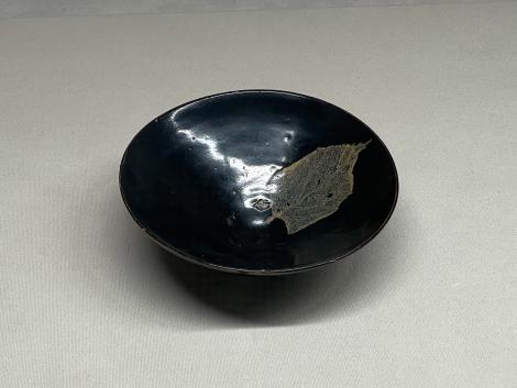 構造色で妖しく青く光る曜変天目を、蛍光灯の下にさらした写真が紹介され、青が全く見えなくなってしまいツブツブがうっすら見えるだけの真っ黒い茶碗だったのは衝撃的。逆に光の当て方次第ではさらに青く光るようでパワポの写真は、曜変天目紹介ページの写真よりさらに青く光ってました。