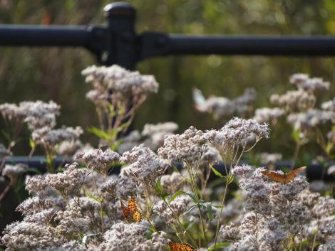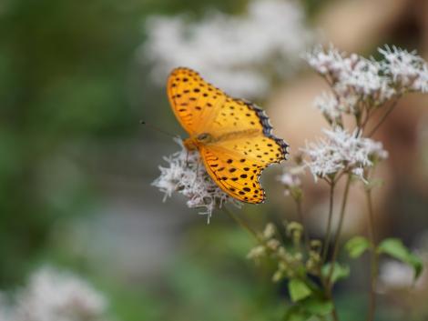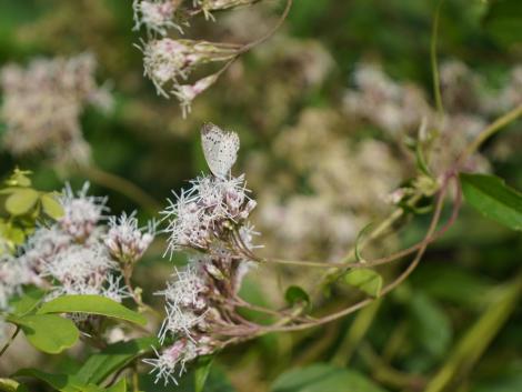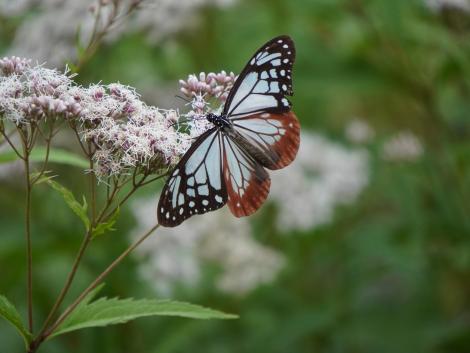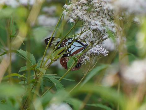 目的はアサギマダラ、コハクチョウとならんで毎年欠かさず会いに出かけていたはずが、去年はチャンスを逃してしまいました。半年くらい滞在するコハクチョウと違って、アサギマダラに会えるのは概ね9月末から10月前半だけ。経験上、会える可能性の高いのが京都です。この時期、洛中洛外各所でアサギマダラが大好物のフジバカマが薄紫の花を咲かせているはず。西山の大原野神社辺りがより可能性が高いのものの、曇り空でレンタサイクルはそそらないのでダメ元で洛中と周辺にしました。