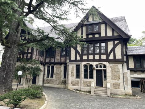 烏丸通に出ると向かい側に瀟洒な洋風建築。道路を渡ってみると「大丸ヴィラ」との説明板が取り付けられていて、何とヴォリーズ建築事務所設計で昭和7年築の大丸社長宅と分かりました。ほぼ純粋なチューダー様式(16世紀頃の英国建築様式)でまとめられた昭和初期を代表する建築物として京都市登録有形文化財。