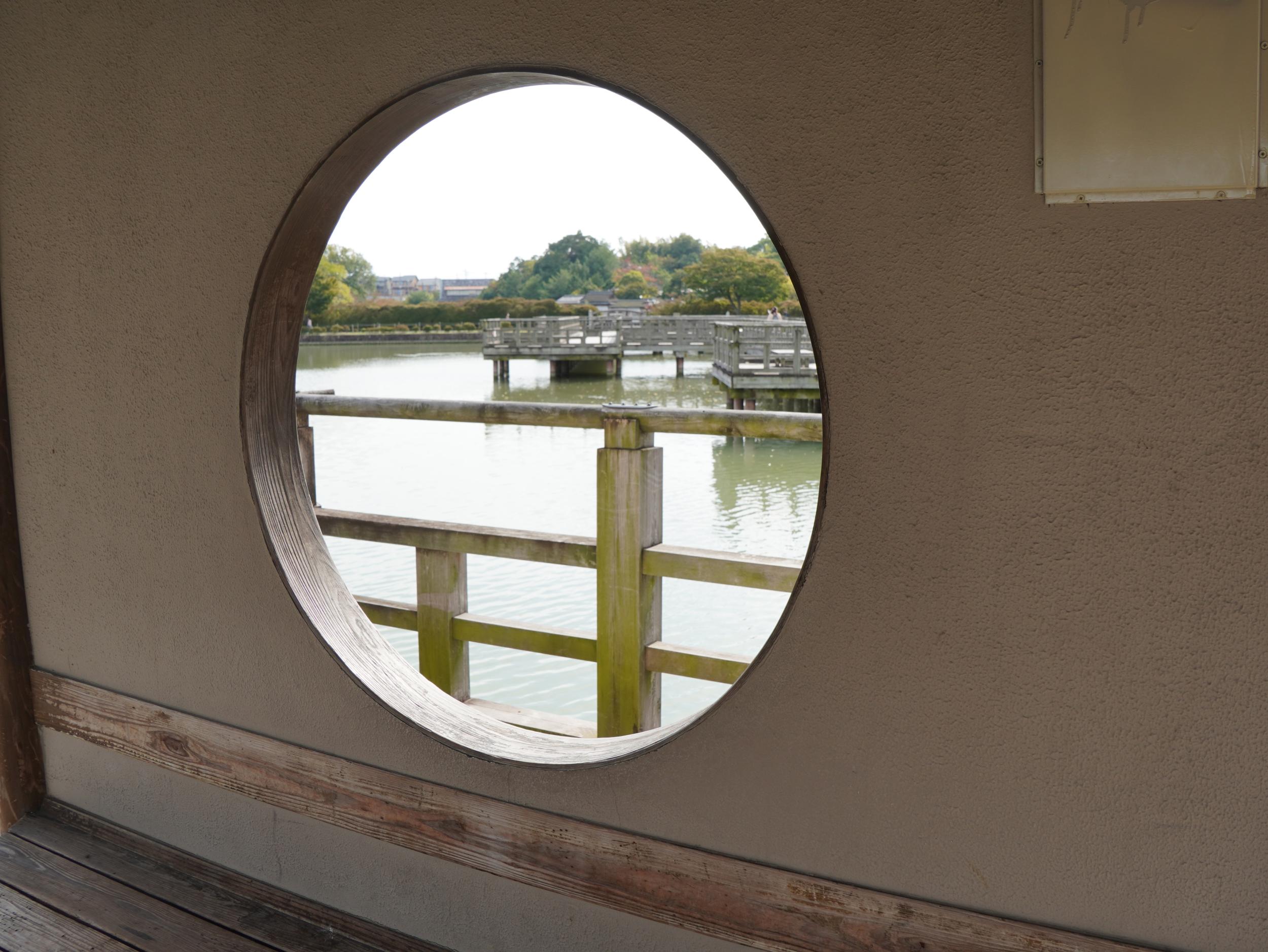 長岡宮のジオラマ。一枚目は南側からのアングルですが、朝堂院公園案内書のCGや説明板で案内されていた応天門から両翼に伸びていたはずの楼閣(翔鸞楼、栖鳳楼)がありません。発掘調査で楼閣が確認される前に作られたジオラマなのかも。