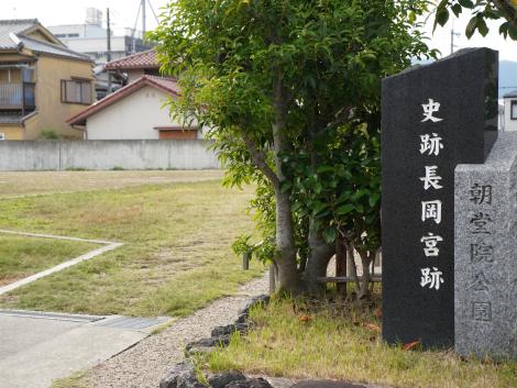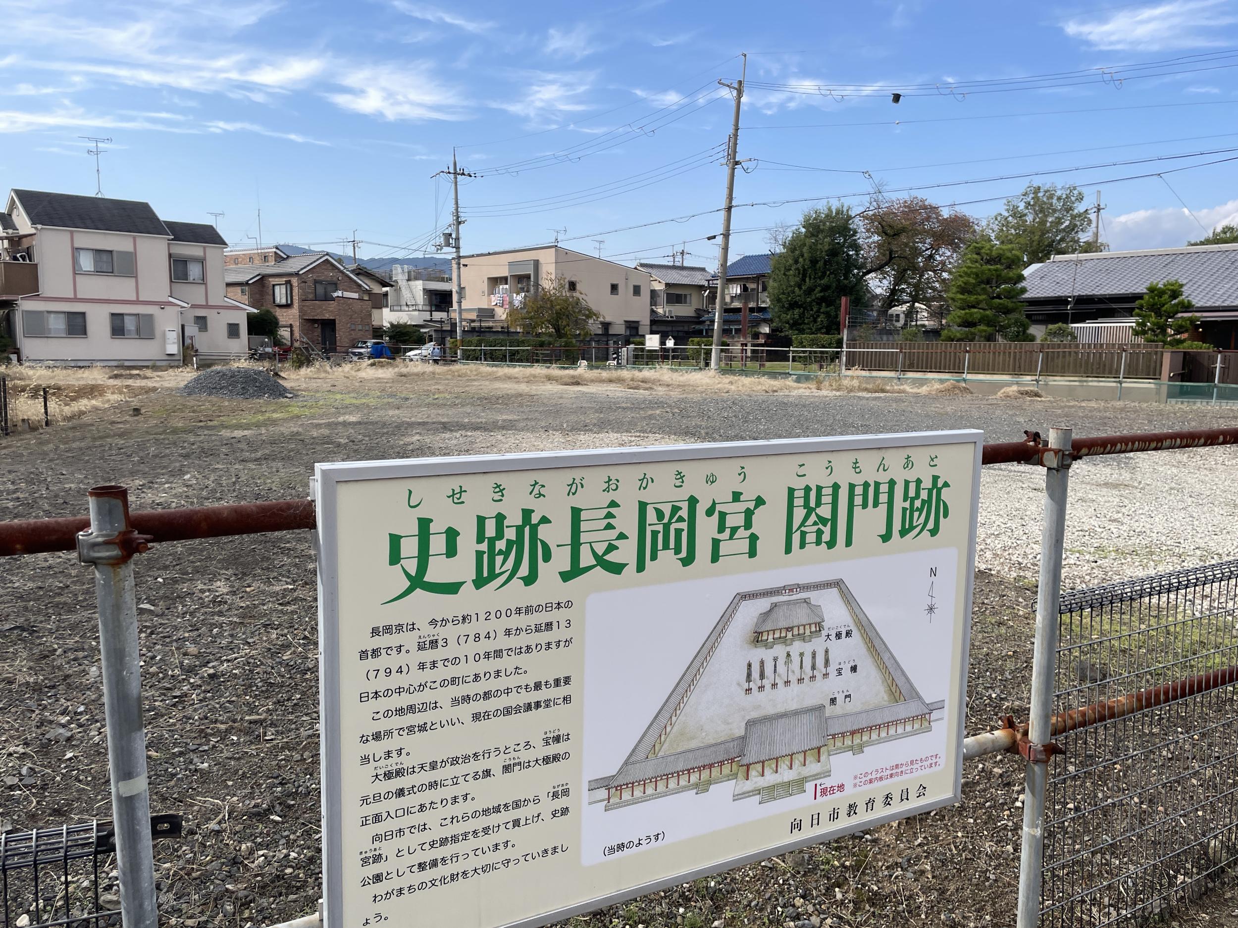 長岡京の宮域が長岡宮、ほぼ全域が向日市域に含まれると自慢気な一文。但し京域は東西4.3km南北5.3kmと西山天王山駅付近まで広がっていて、桓武天皇の詔に「水陸の便ありて、都を長岡に建つ」とあるので、長岡京市が長岡宮市ではなく長岡京市と名乗ることに不都合なさそうですが、釈然としない気がしないでもないです。