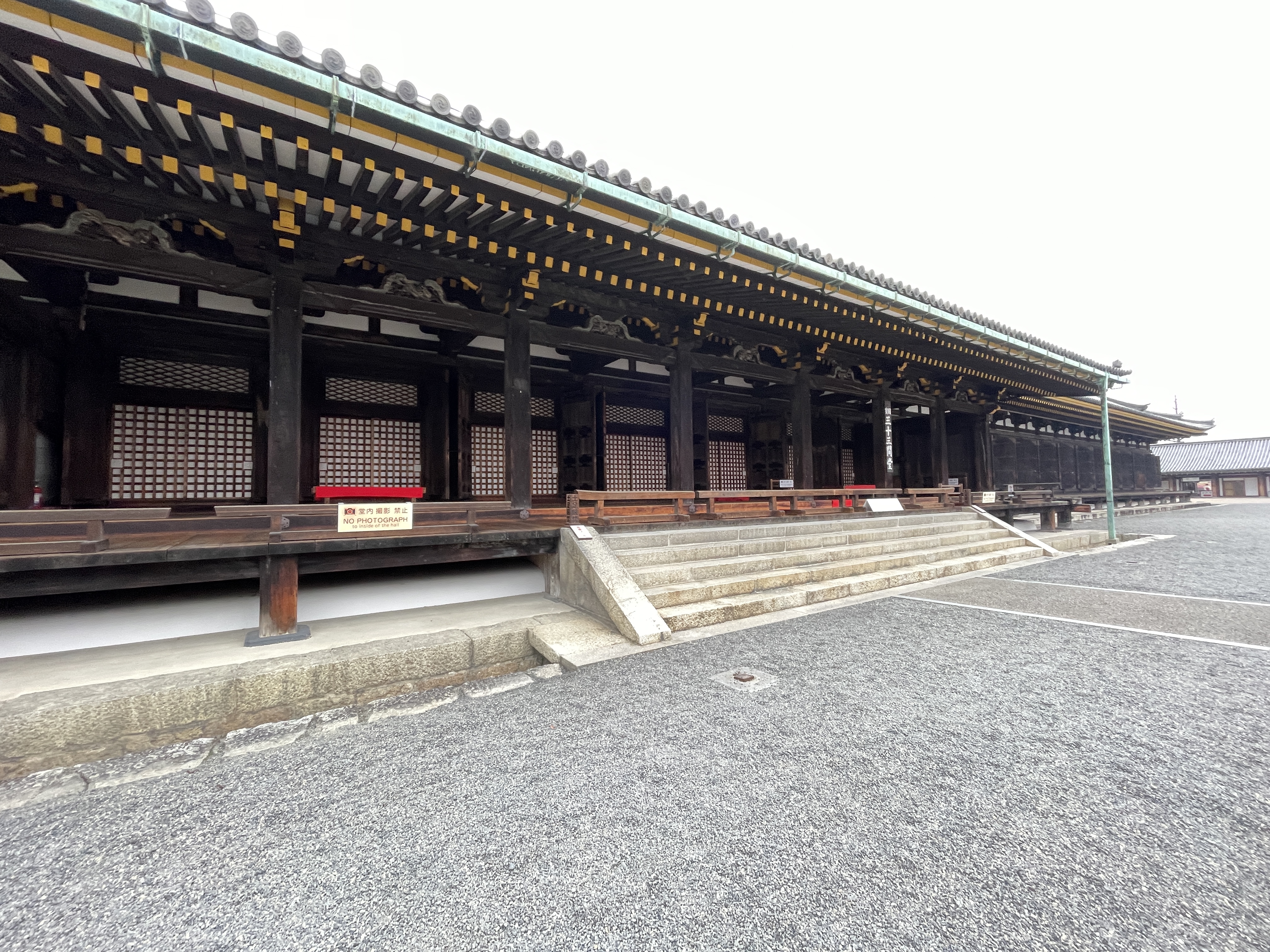 万博レベルを想起させる大行列、16:40に並んだ人のX投稿を見ると、南大門から西へ伸びて、さらに北へ伸びて、三十三間堂全体を囲むように行列が伸びていました。