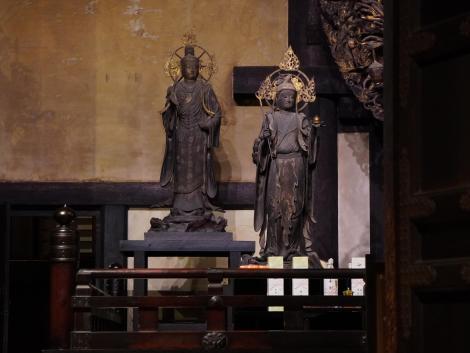 残る4体は本尊の両脇に脇侍しいました。本尊左に大弁功徳天(左、だいべんくどくてん、吉祥天)と帝釈天王(たいしゃくてんのう)、本尊右に婆籔仙(ばすせん)と大梵天王(だいぼんてんのう)。