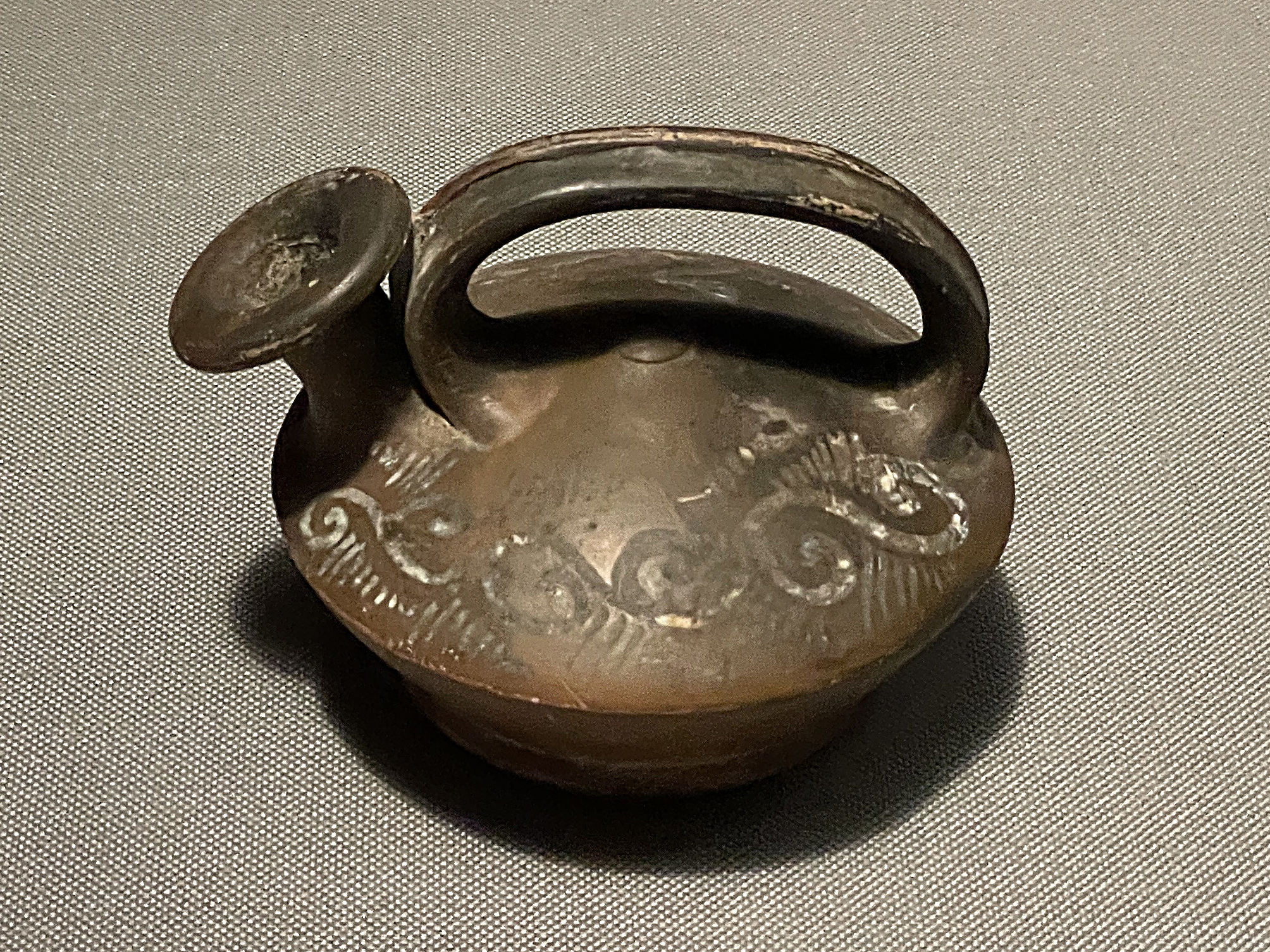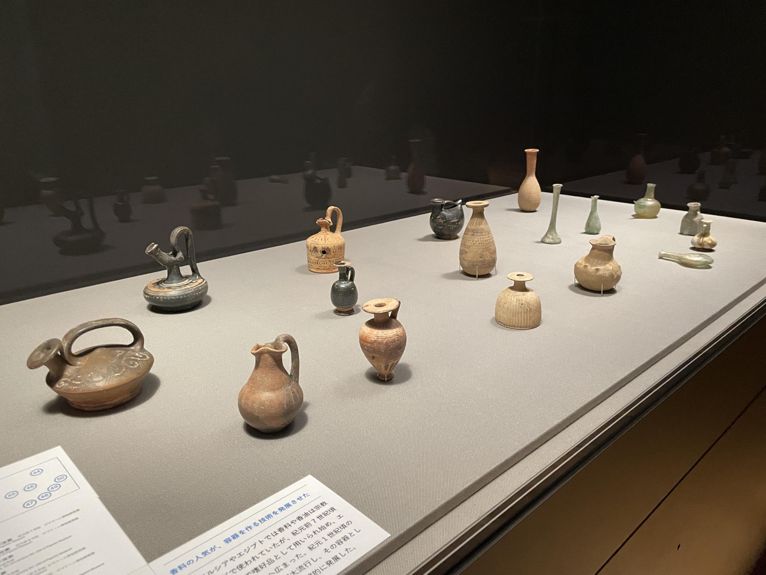 天理参考館で見た東地中海の香油壺と較べるとここに展示された香油壺は素朴、都市国家と農耕社会という大きな違いはあるものの、日本の弥生時代を彷彿とさせる要素を感じさせます。