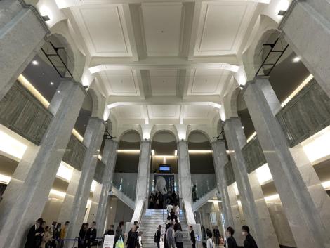 大阪市立美術館エントランスホール2階のステンドグラス。天空のアトラスの顔出し看板は大人気でした。