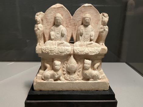 当館の北魏石造彫刻や関西の実業家、山口謙四郎氏により収集された山口コレクション。2018年の山口コレクション展の説明文には「本コレクションの特徴は、石材を丸彫したいわゆる単独像が多くを占め、石窟寺院より将来された造像が少ない」ことが特徴として紹介されていました。やはり石窟寺院将来の石像を蒐集することに美術館としても問題意識は拭えないようです。