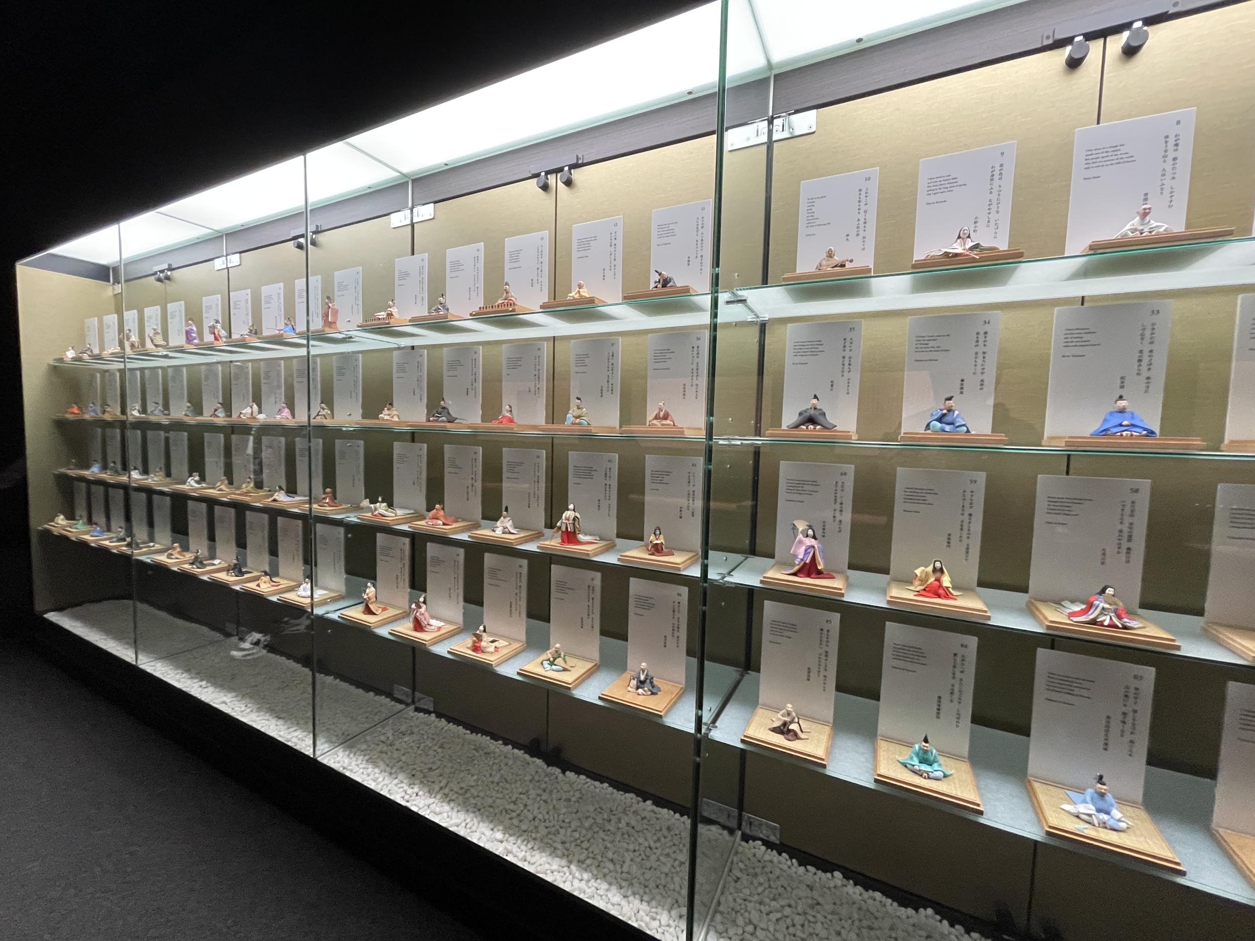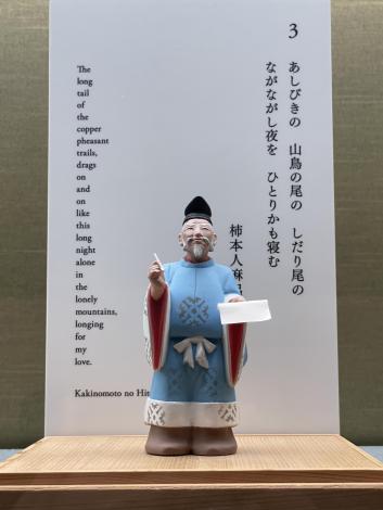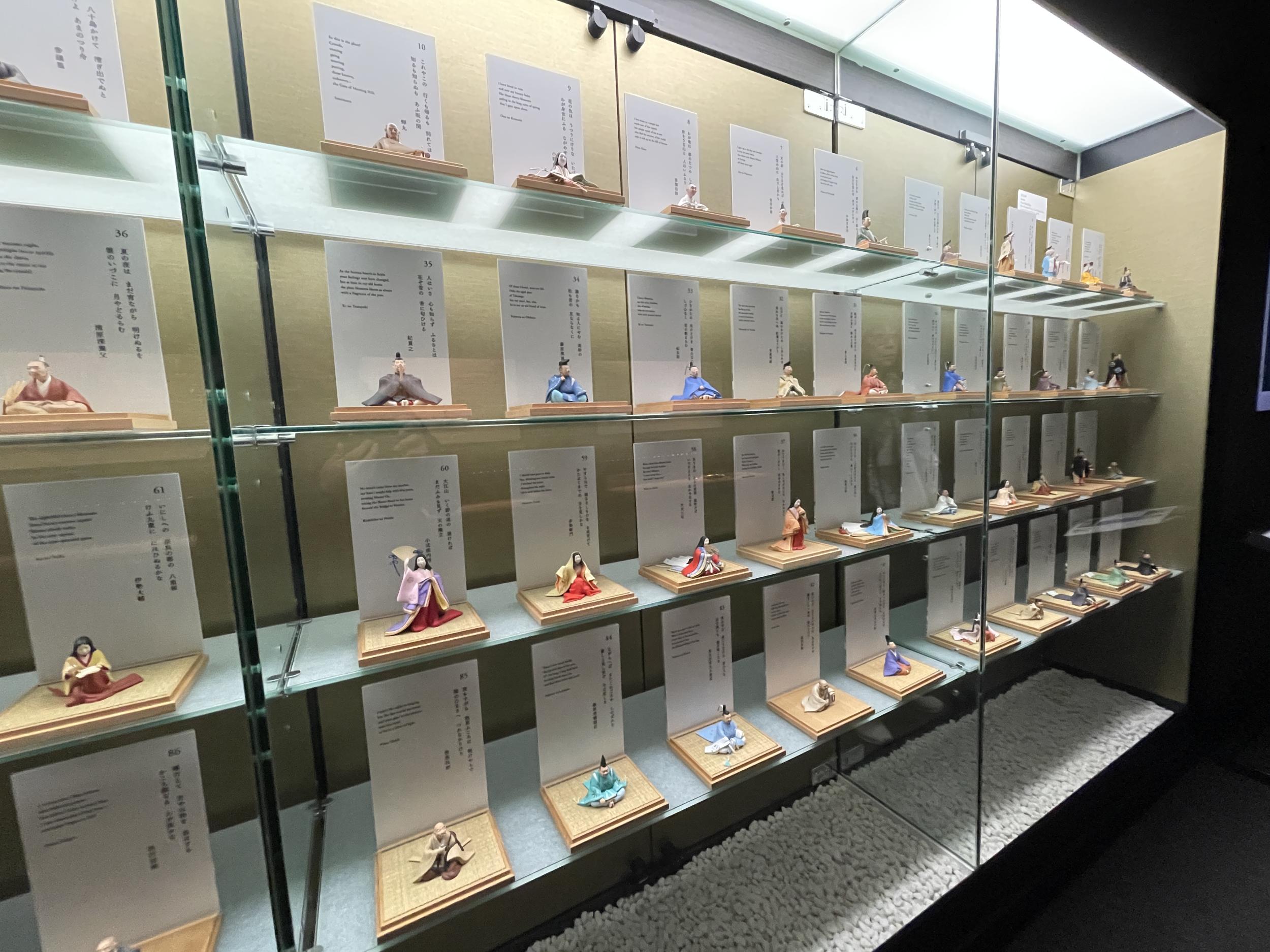 帰りがけに学芸員さんらしき女性を見つけ、百人一首フィギュアの作者は誰なのかを訊ねてみたところ、ヤマネという会社だと教えてくれました。調べてみると豊中にある模型製作会社で、嵯峨嵐山文華館の歌仙人形は同社の作品であることが記されていました。京阪電車のHOゲージ模型なども手掛ける一方、何と、近つ飛鳥博物館の仁徳天皇陵の巨大ジオラマや、弥生文化博物館の卑弥呼の館、奈良市役所の平城京ジオラマもこの会社の作品でビックリ。