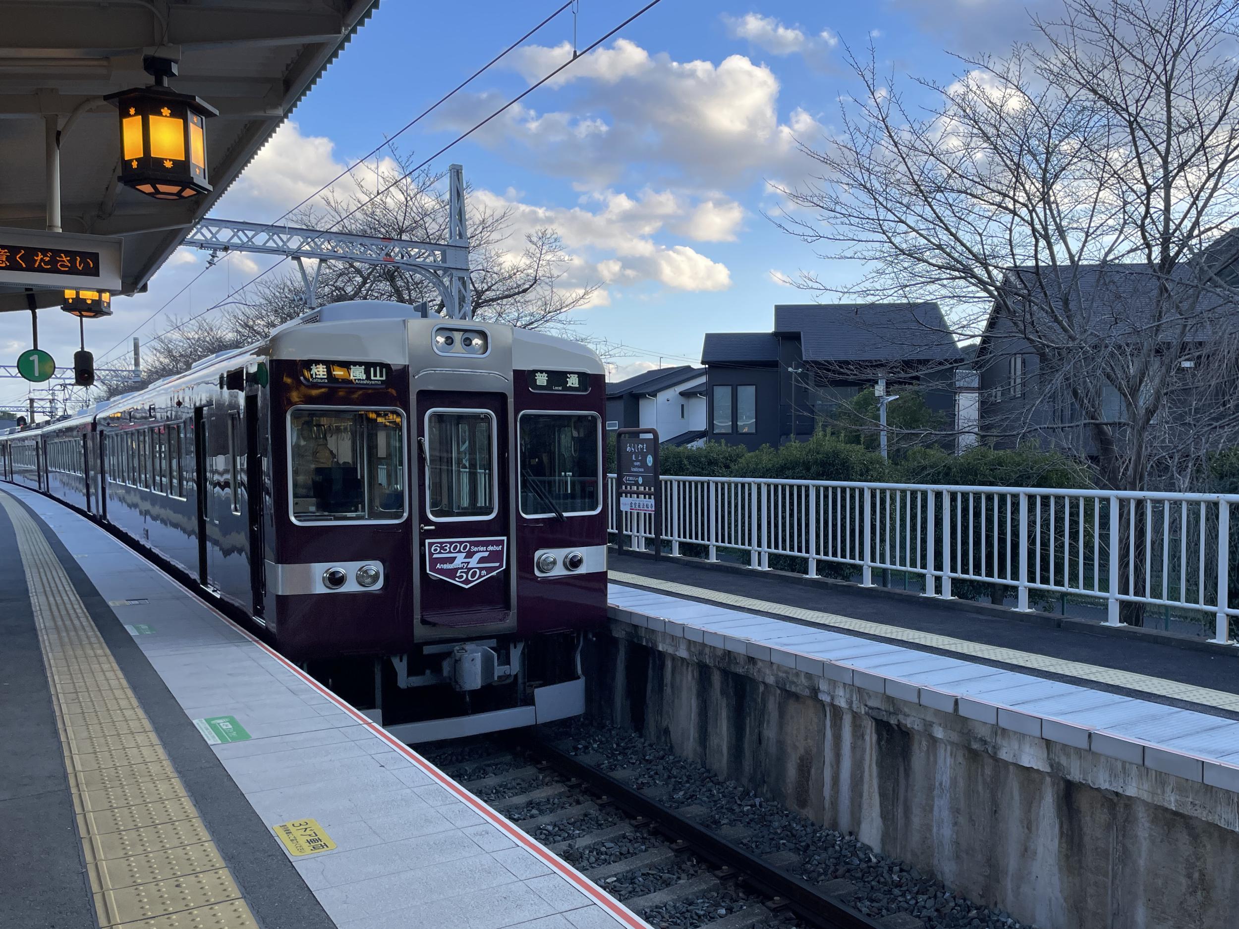 宝塚線星のカービィと並走し、十三には9000系神戸線特急と3本同時に到着。