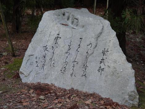 小倉百人一首歌碑MAPによると、ここ長神の杜に19首、亀山公園に49首。