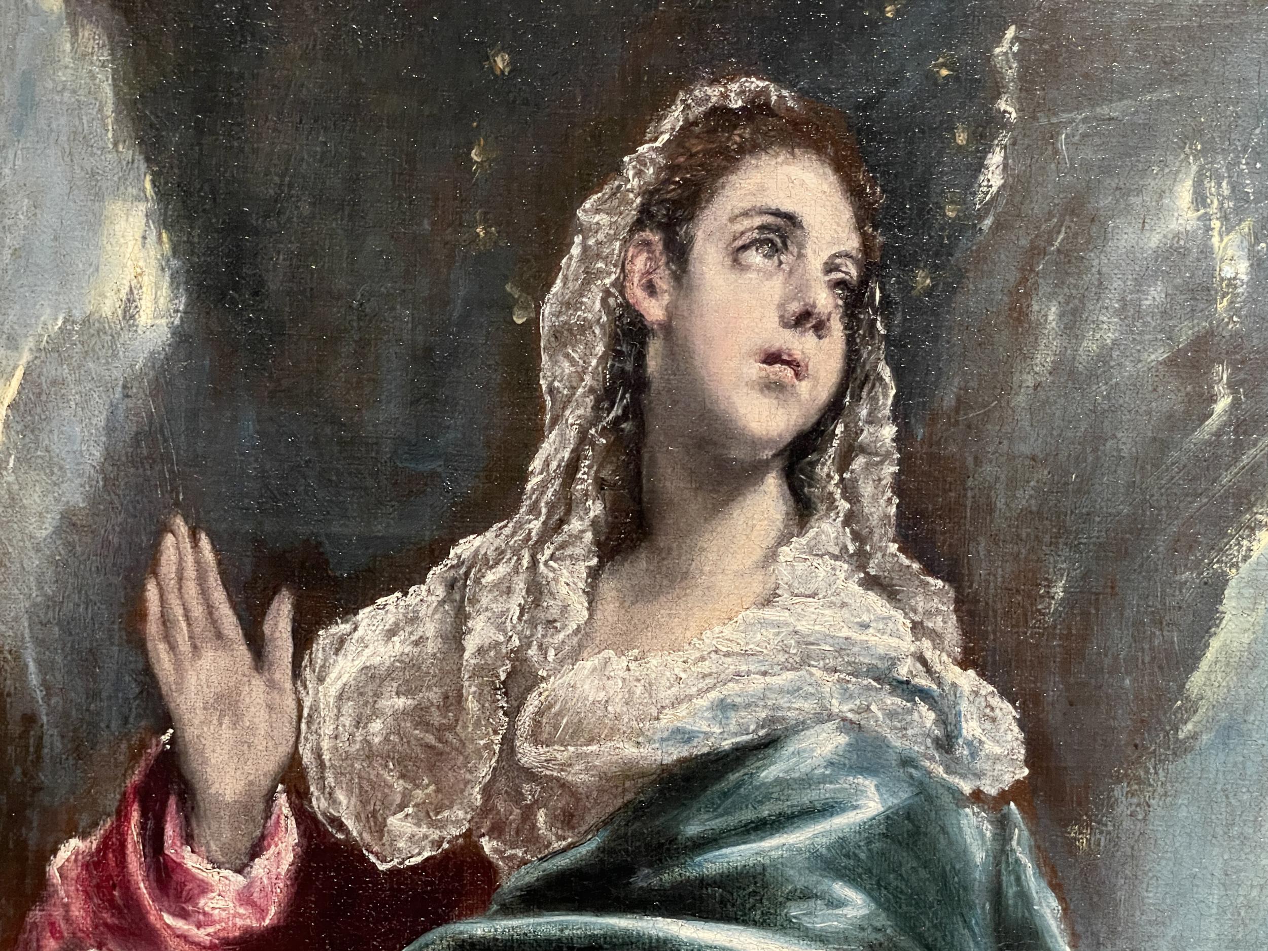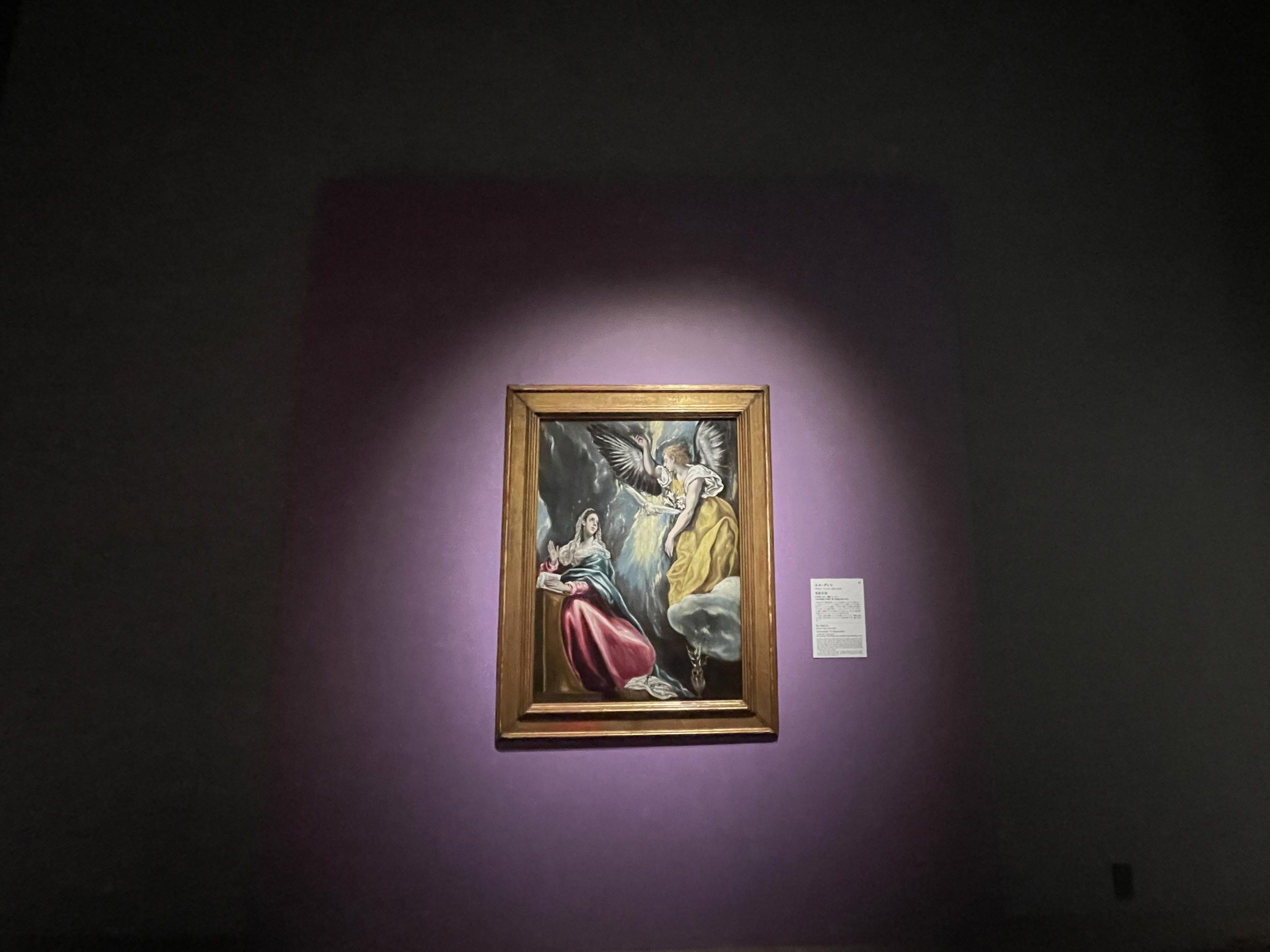 周りに誰もいない瞬間に引いて撮って、エル・グレコならではの光を際立たせてみました。昨年夏にプラド美術館から絵画修復士を招聘し、表面の汚れや後世の加筆部分を除去し、400年前の色調や透明感を取り戻す修復作業が行われたばかり。修復完了後昨年末まで大原美術館でプレ再展示が行われ、年が明けて大阪にやってきたとのことです。