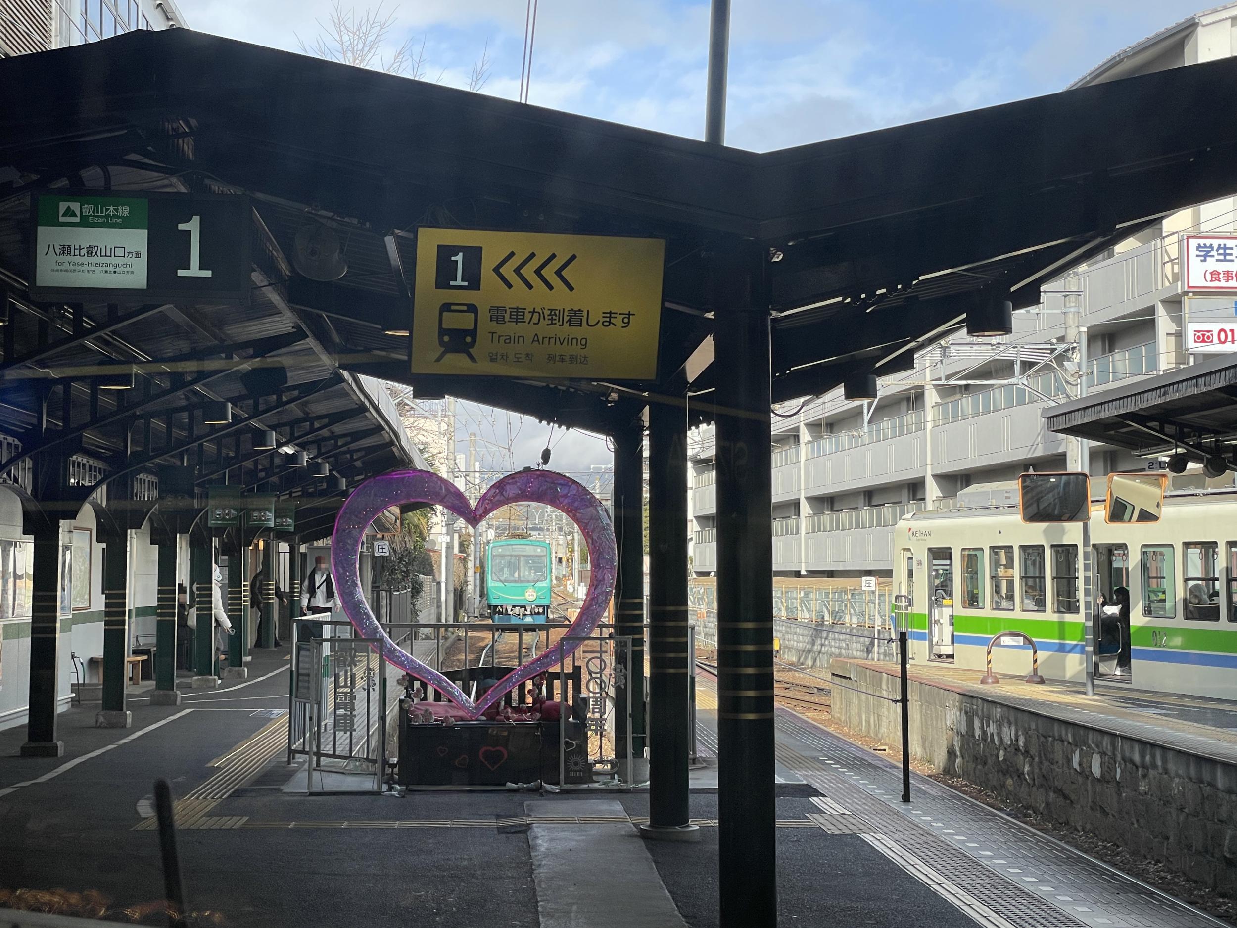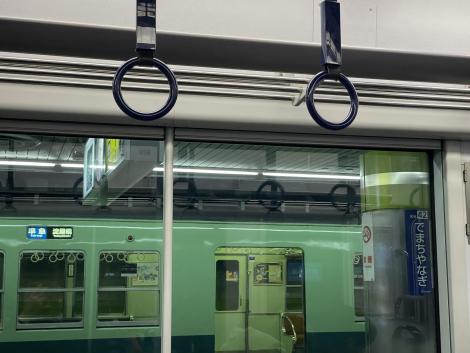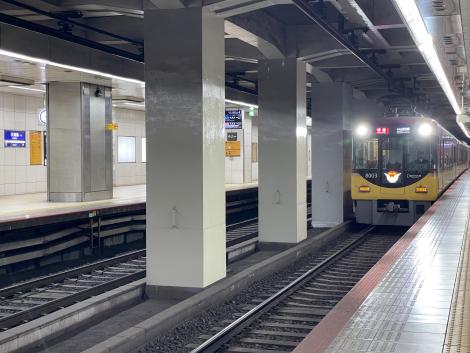 出町柳駅周辺にこれといったお店は見つけられず、さっきの喫茶店でカレーかビーフシチューを食べて来ればよかったです。窓際に肘掛けがなくて8000系と較べて居心地が劣る3000系の特急で帰ります。窓の向こうに復刻塗装2200系。