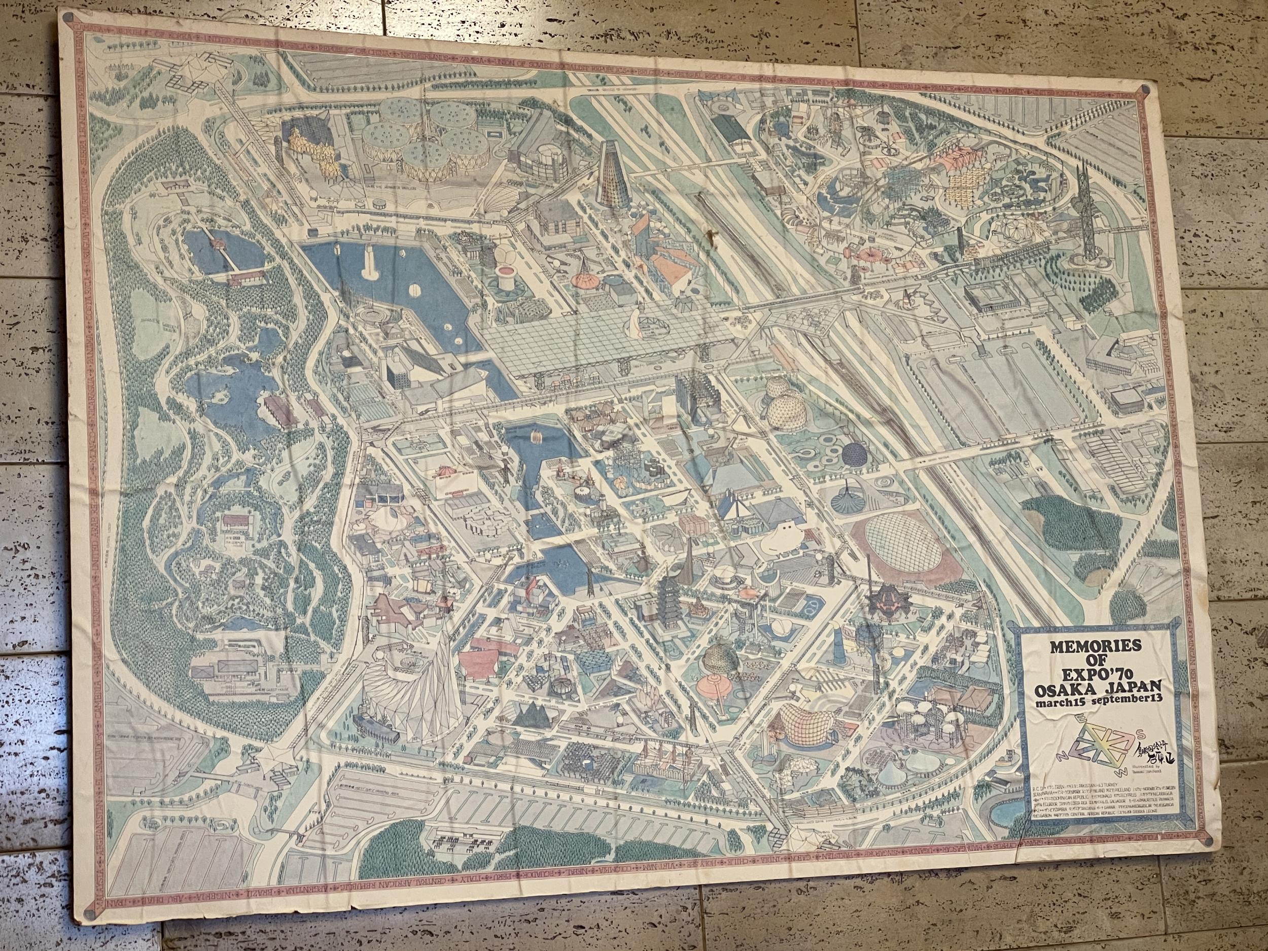 下鴨神社の方へ向かうと、府道沿いにタバコが吸えてコーヒー400円の喫茶店を見つけました。マスクの中のガーゼを外すのに忙しくコーヒーを撮り忘れたのですが、壁に貼られたEXPO'70のマップを撮ってました。寒かったので出されたメニューも見ずにホットコーヒーを頼んでしまったものの、くちびるの傷はマシになったのでストロー無しで飲めました。神戸のニュータウンのようなウッディタウンというお店、後でチェックし直すとカレーやビーフシチューも美味しそう、たぶん度々訪ねることになりそうです。