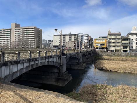 京都の天気予報は「雪ときどき止む」、去年2月に糺の森でルリビタキ、八瀬でカワガラスに会った時のような雪景色を期待していたのですが、七条大橋付近は晴れ渡っていて積雪ゼロ。