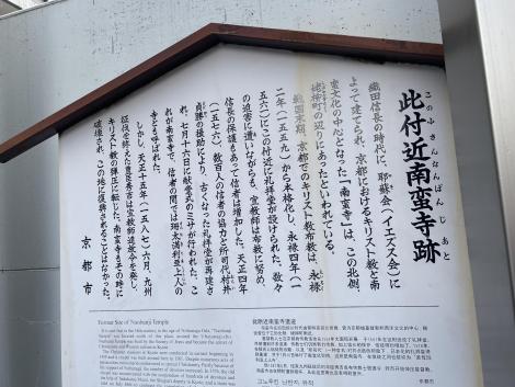 その南蛮寺が建っていた辺りを見てみたくてやってきたのですが、立札によると永禄4年(1561年)にこの付近に建てられた礼拝堂が古くなって、天正4年(1576年)に再建され、天正15年(1587年)の伴天連追放令で破壊され復興されることはなかったそうです。原田マハさんもこの立札はチェックしているはず。