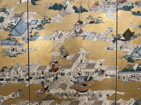 小説にはもうひとつの洛中洛外図屏風が登場します。ちょっとネタバレになってしまいますが、ローマ法王へ献上されるものとして、狩野永徳と少年俵屋宗達の共作で、京だけでなく安土城が描かれ、洛中には南蛮寺や伴天連や南蛮人たちも描かれています。