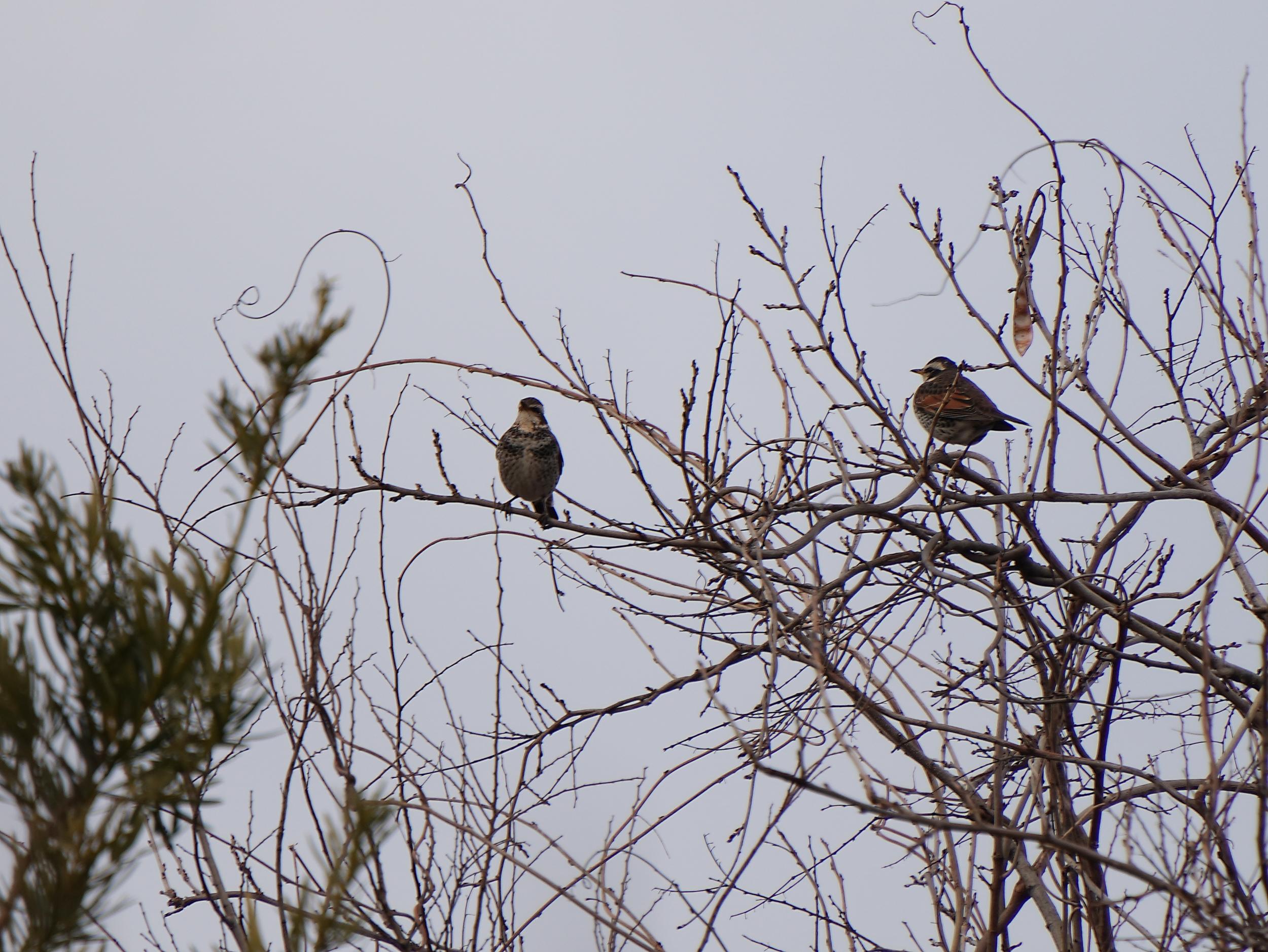 吉城園と北西側の森をしきりに行き来している鳥たちが葉っぱの落ちた枝先に止まり、ツグミと確認できました。