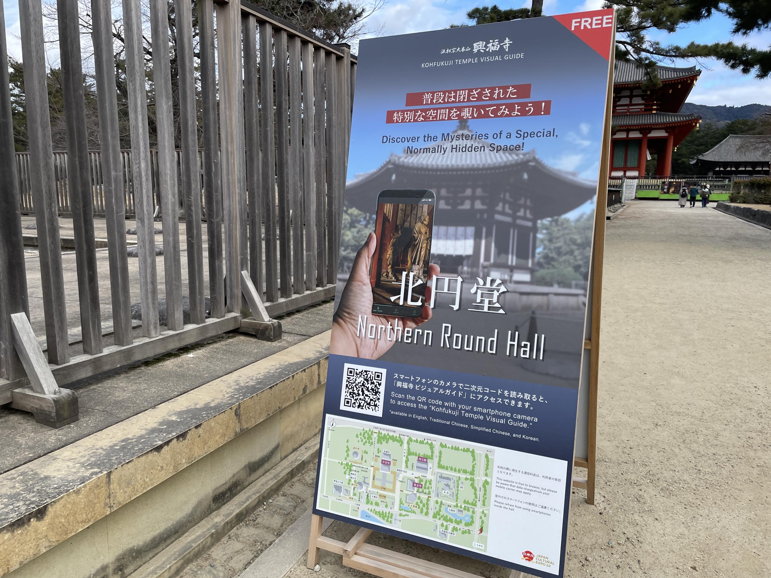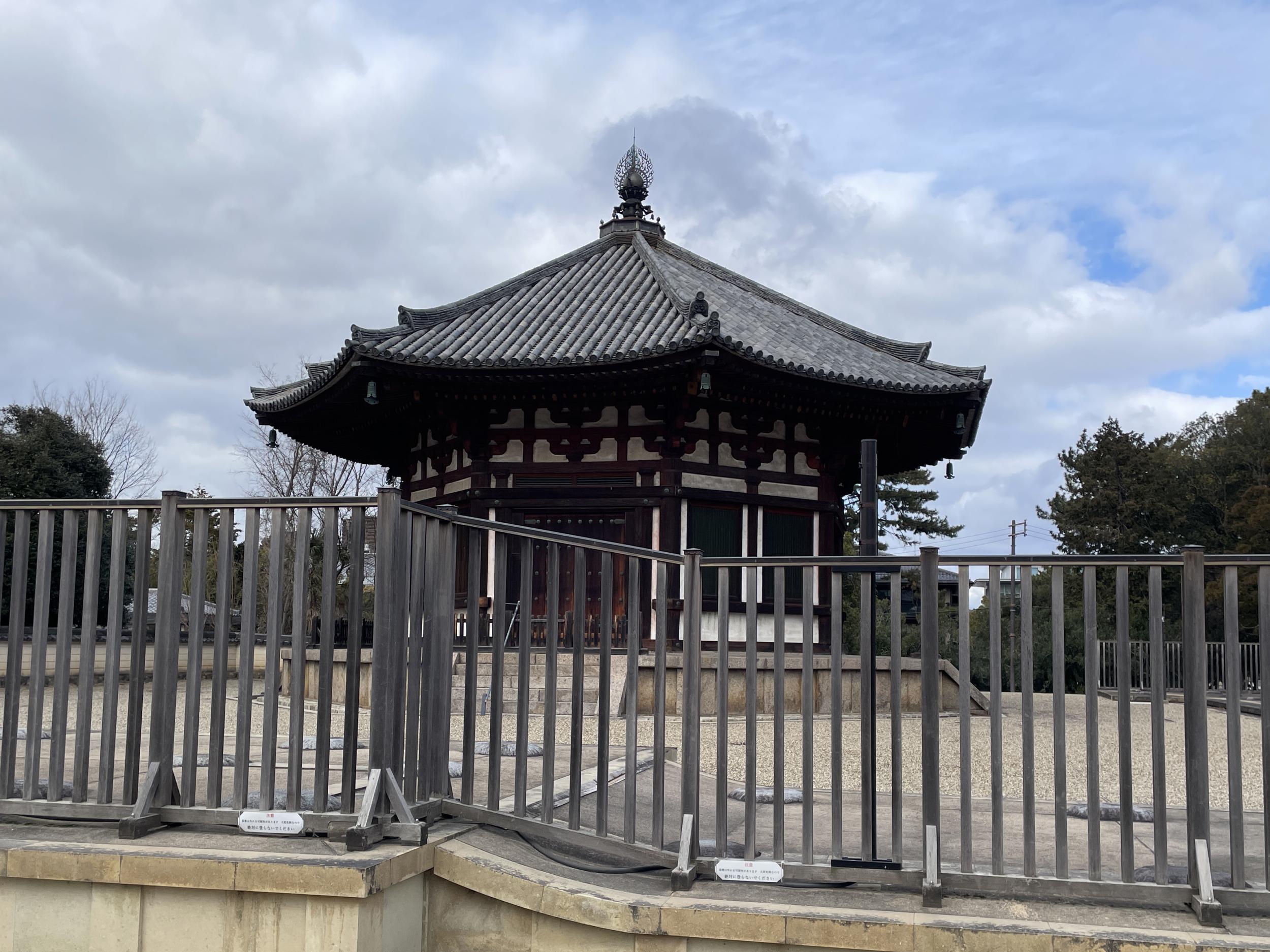 金堂隅の授与品販売所の尼さん(たぶん)に戦災前の四天王像はこんなポーズだったんですよね、と身振りを交えて尋ねてみたところ、同じ身振りを返してくれて、その四天王像は宝物館で展示されているとの回答にビックリ。