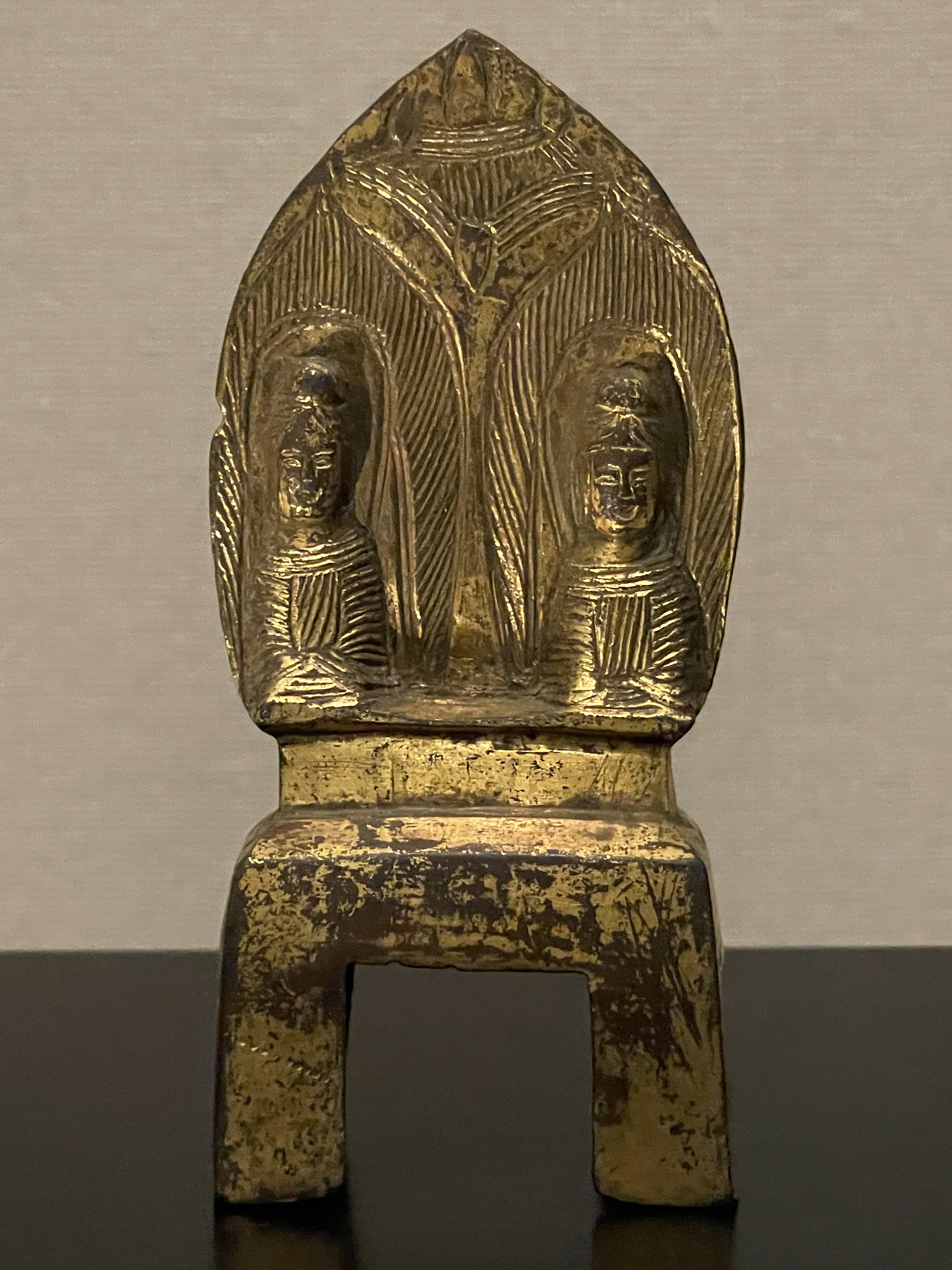 二仏並坐像(中国北魏、正始元年-504年)は大阪市立美術館の北魏〜隋時代の石仏の金銅仏版、笑顔が同じです。いずれも日本に仏教が伝来する前の仏像です。