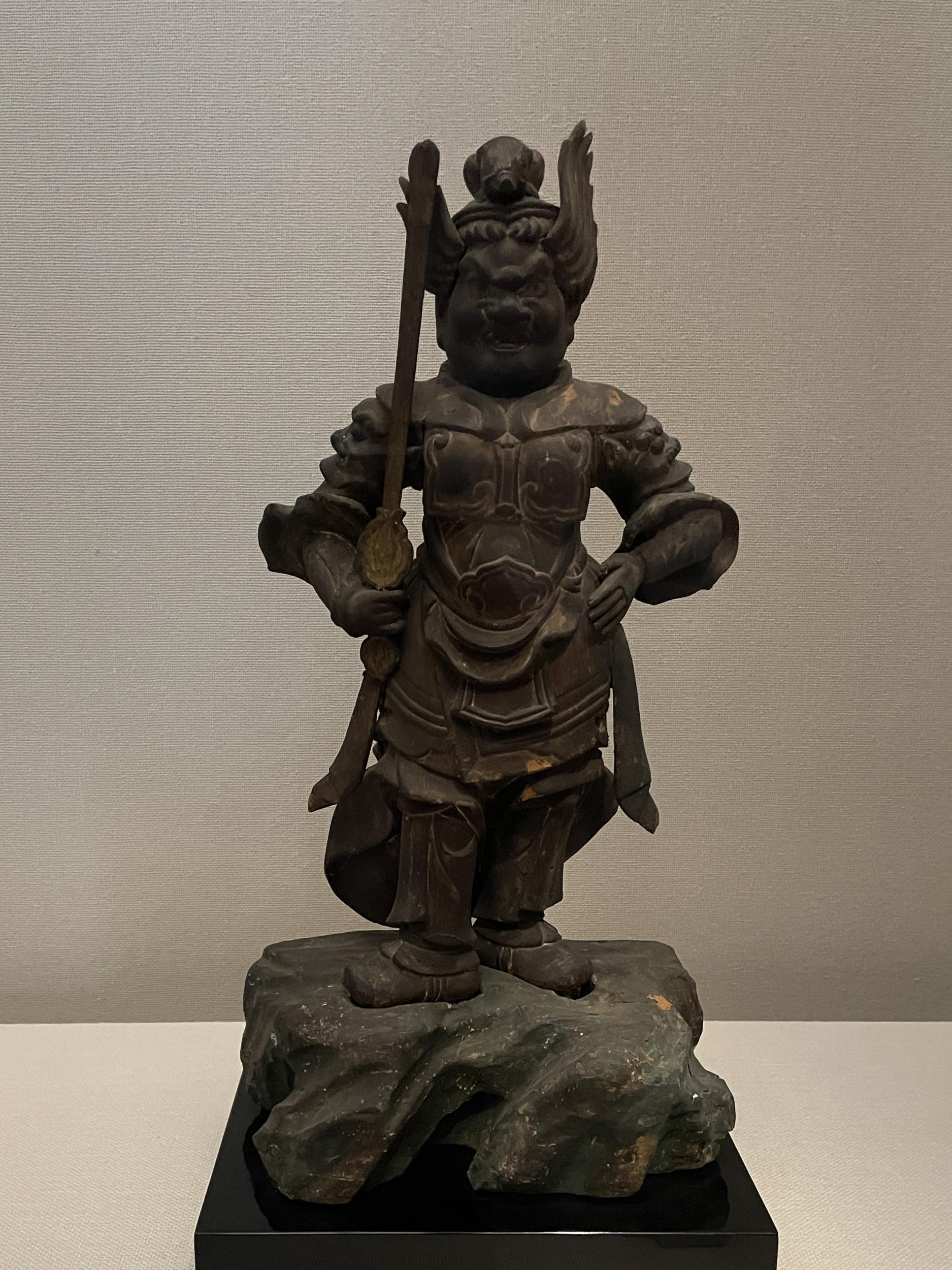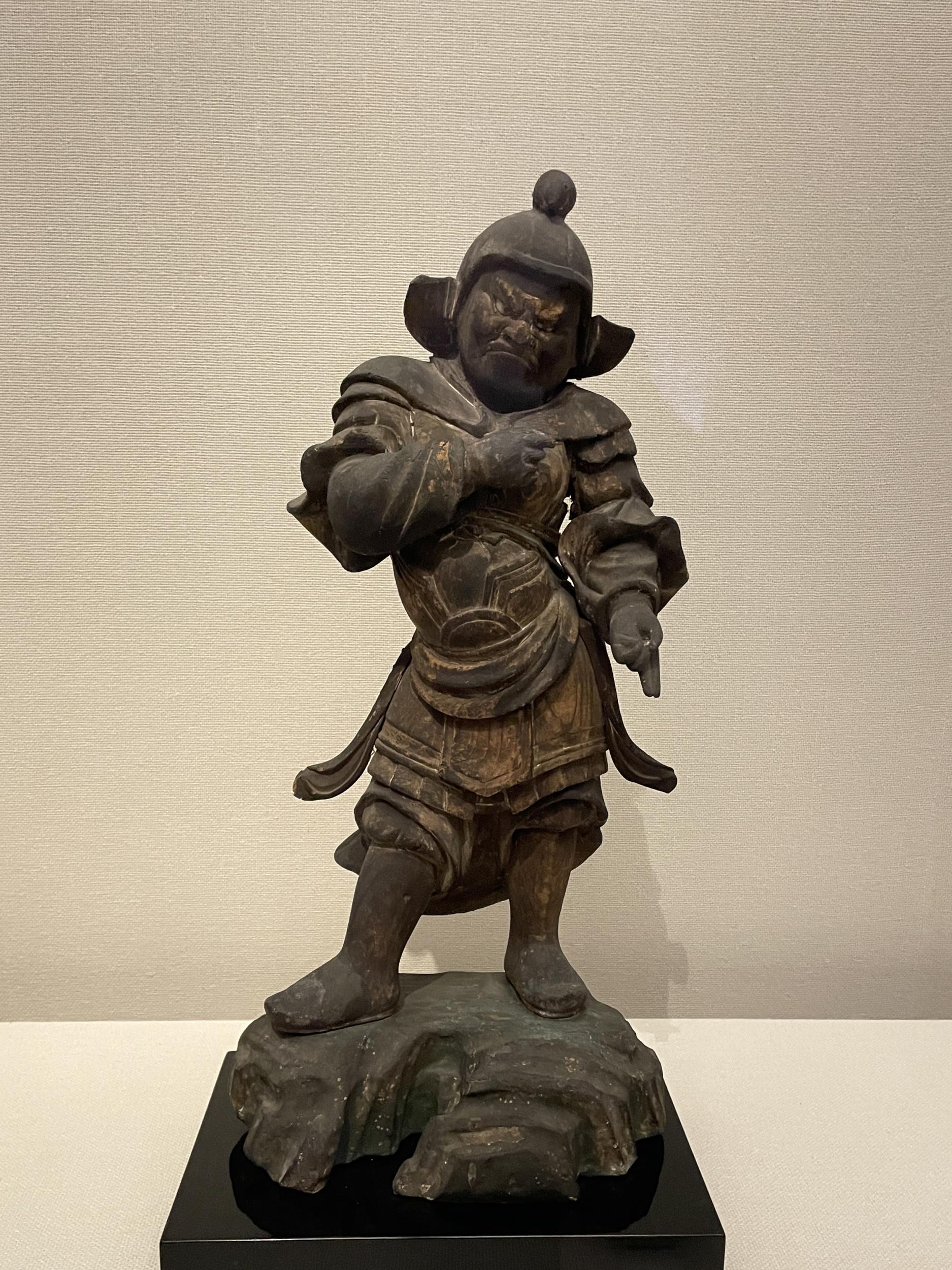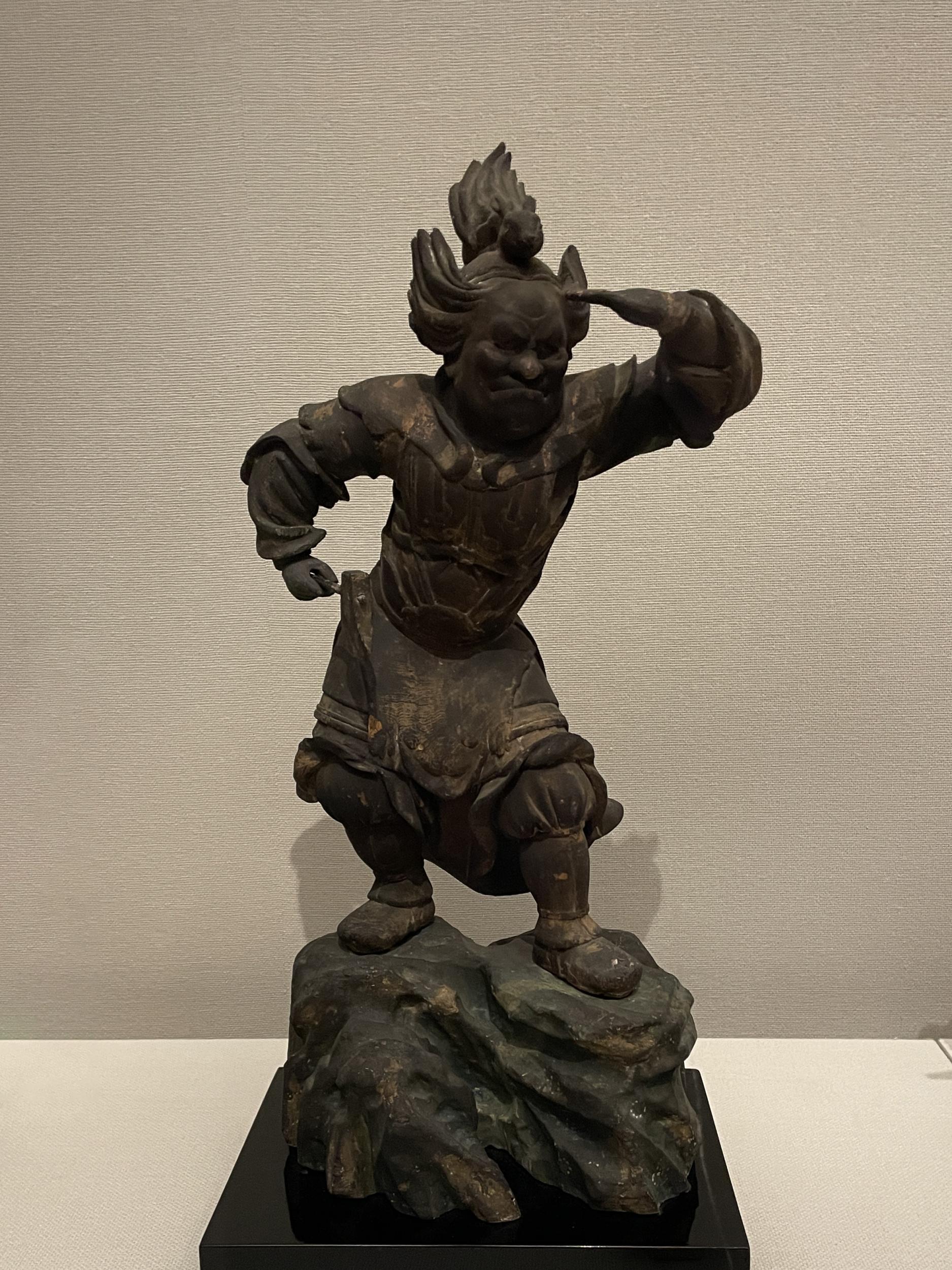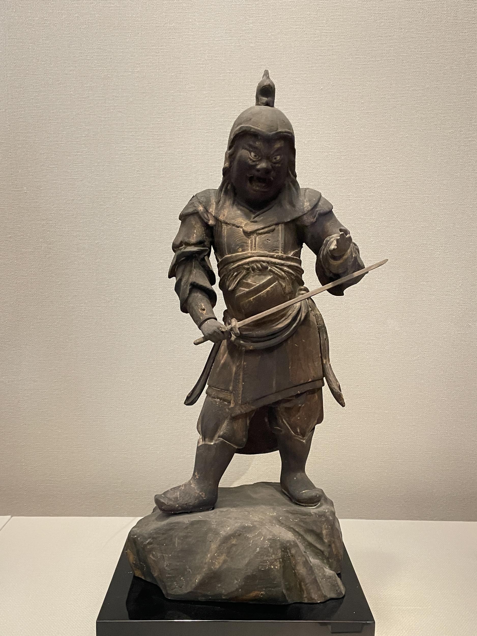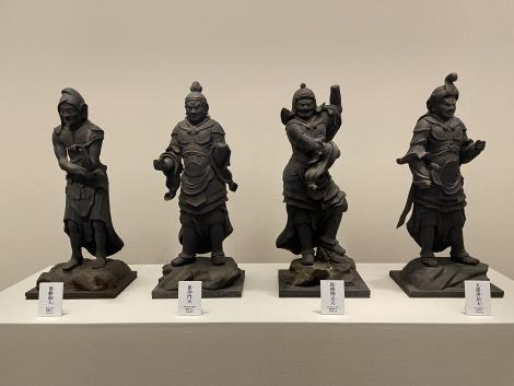 金峯山寺仁王門金剛力士立像の大きな展示室に重要文化財興福寺伝来の四天王像(平安〜鎌倉時代)、順に広目天、増長天、持国天、多聞天。明治39年まで興福寺に一具(セット)で伝来、増長天と多聞天は当館、広目天は興福寺、持国天はMIHO MUSEUM所蔵で四軀揃っての展示は28年ぶりとのこと。制作時期は11世紀〜13世紀の諸説あり、興福寺のどの堂宇に安置されていたかも特定されていないそうです。