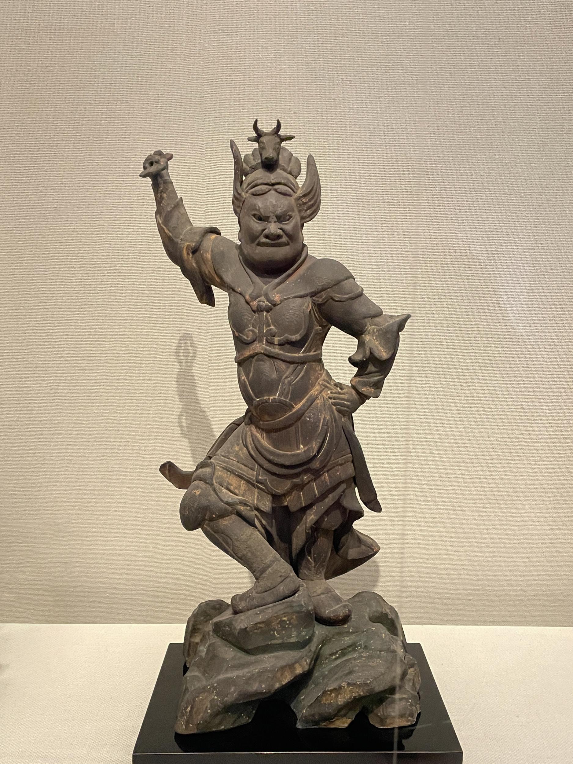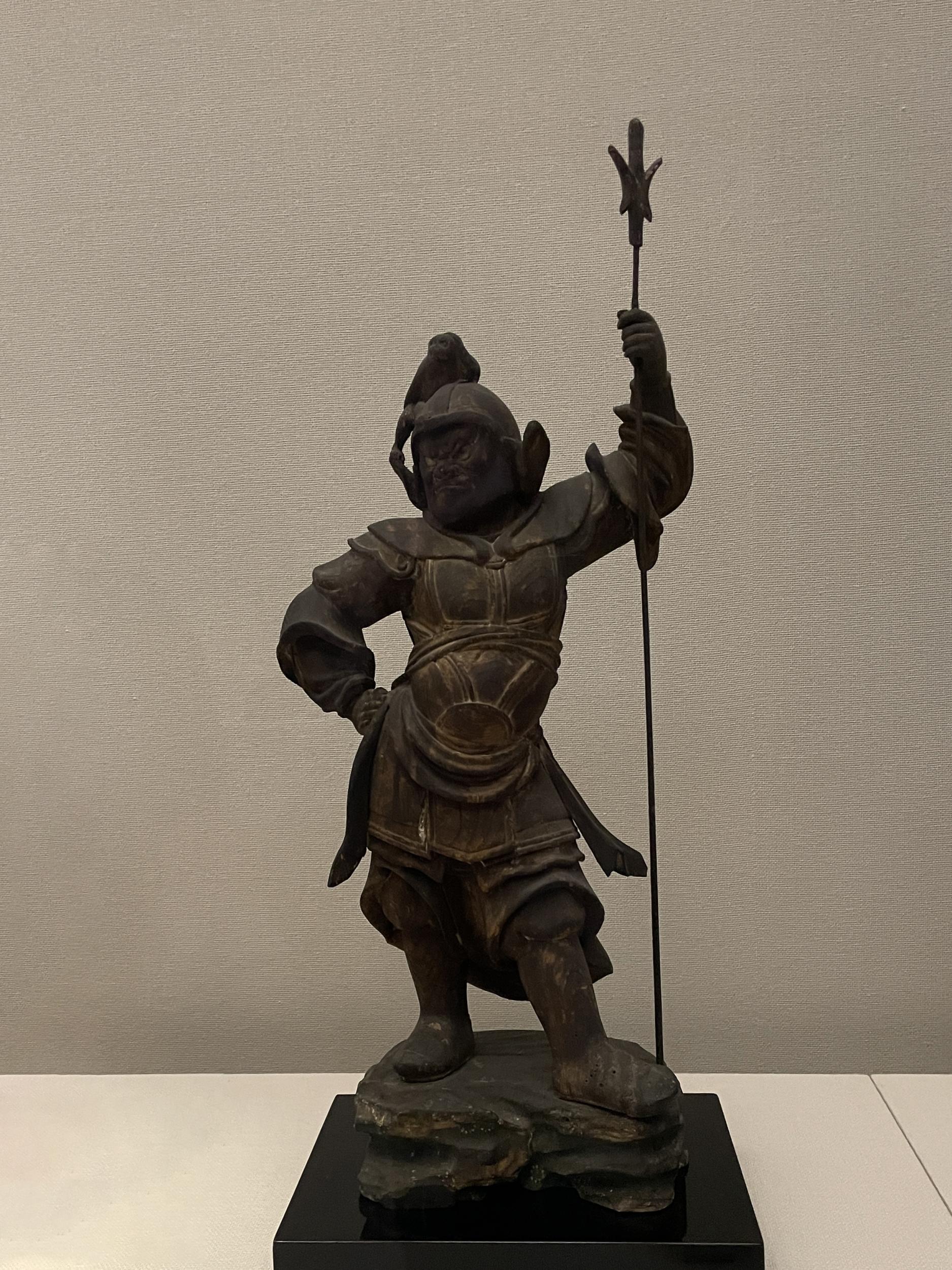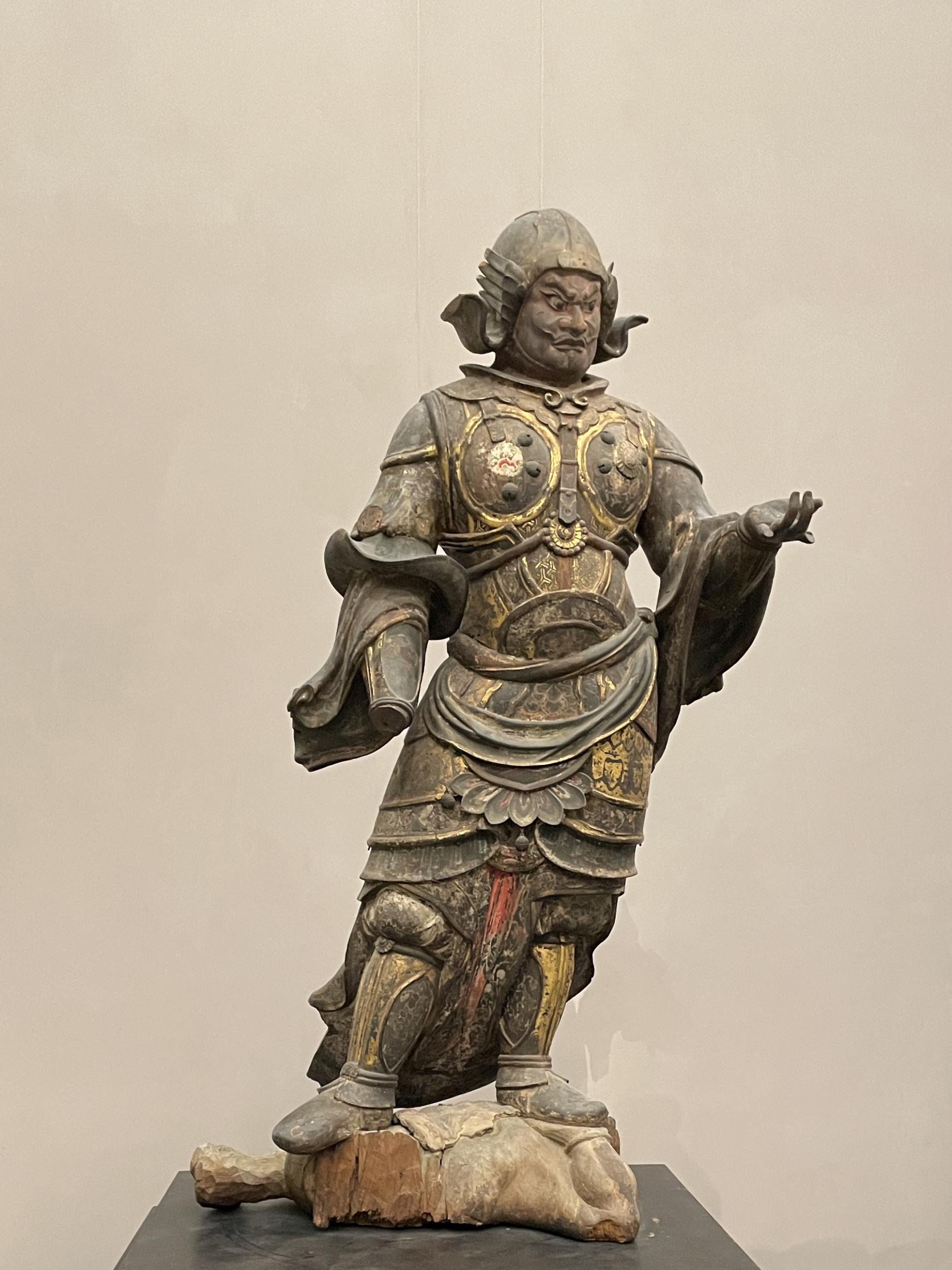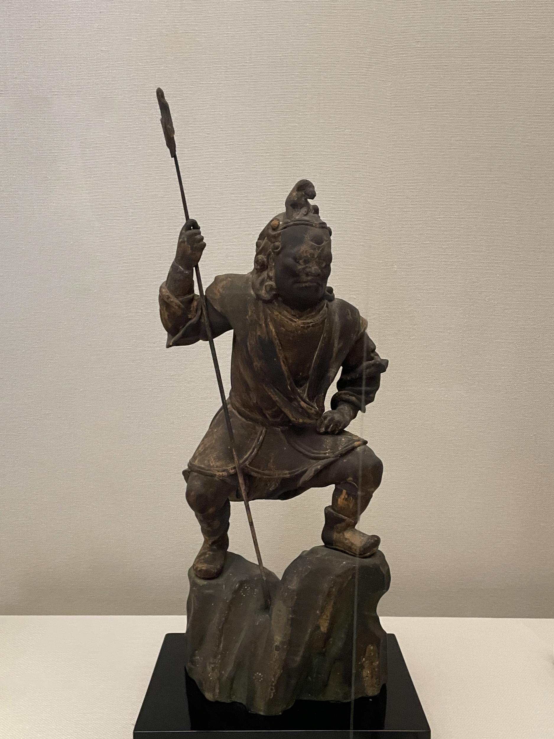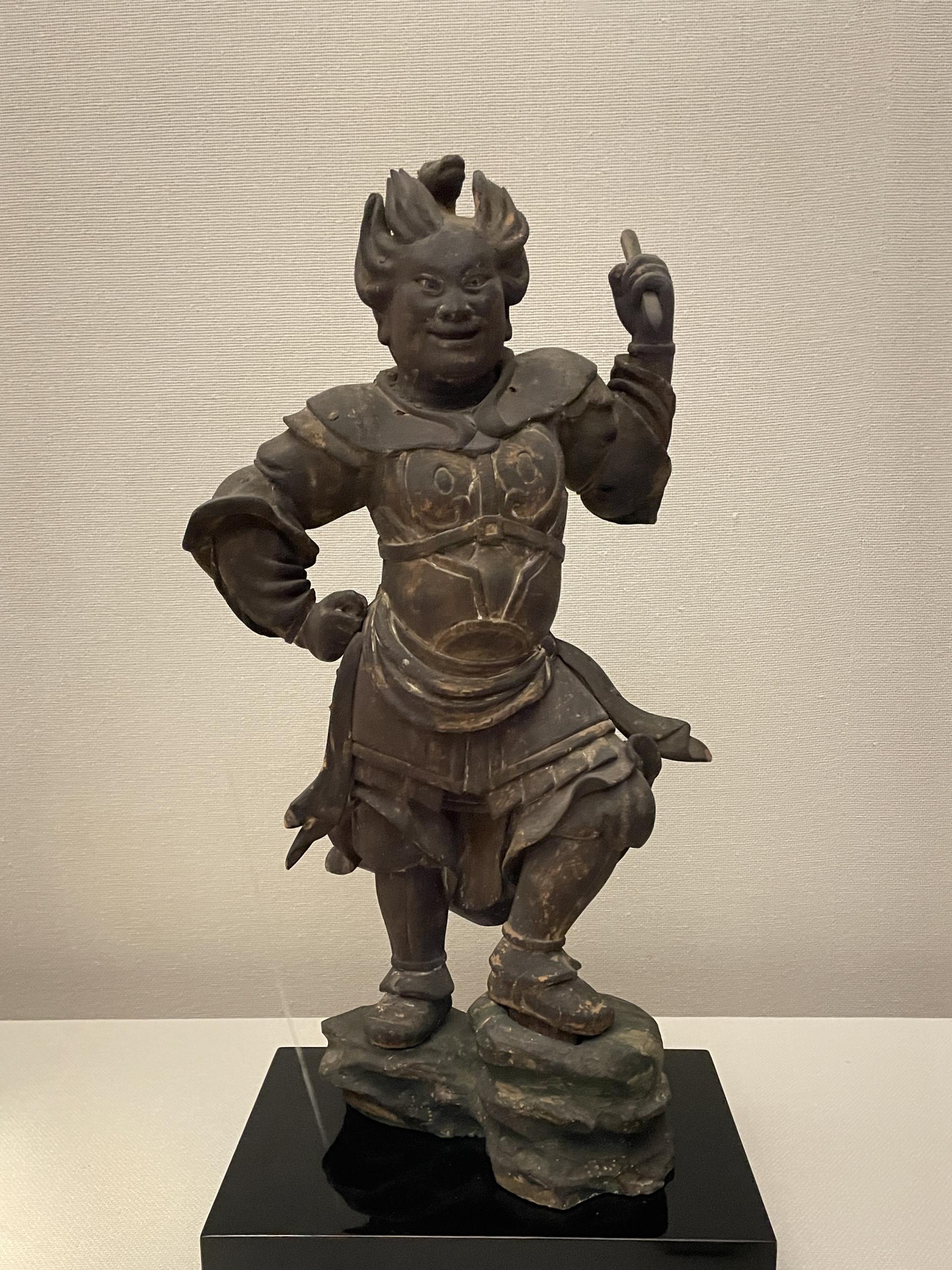 金峯山寺仁王門金剛力士立像の大きな展示室に重要文化財興福寺伝来の四天王像(平安〜鎌倉時代)、順に広目天、増長天、持国天、多聞天。明治39年まで興福寺に一具(セット)で伝来、増長天と多聞天は当館、広目天は興福寺、持国天はMIHO MUSEUM所蔵で四軀揃っての展示は28年ぶりとのこと。制作時期は11世紀〜13世紀の諸説あり、興福寺のどの堂宇に安置されていたかも特定されていないそうです。