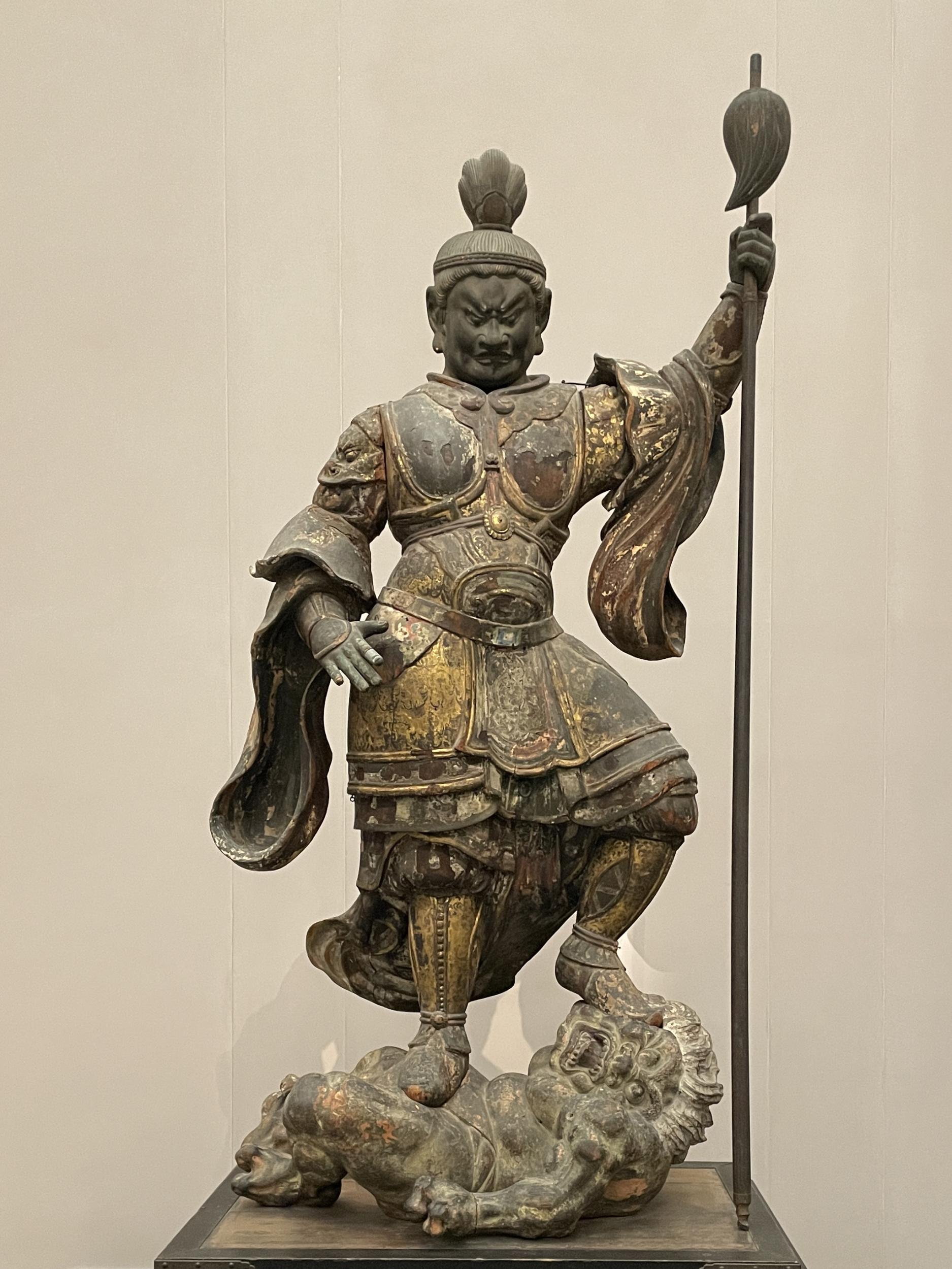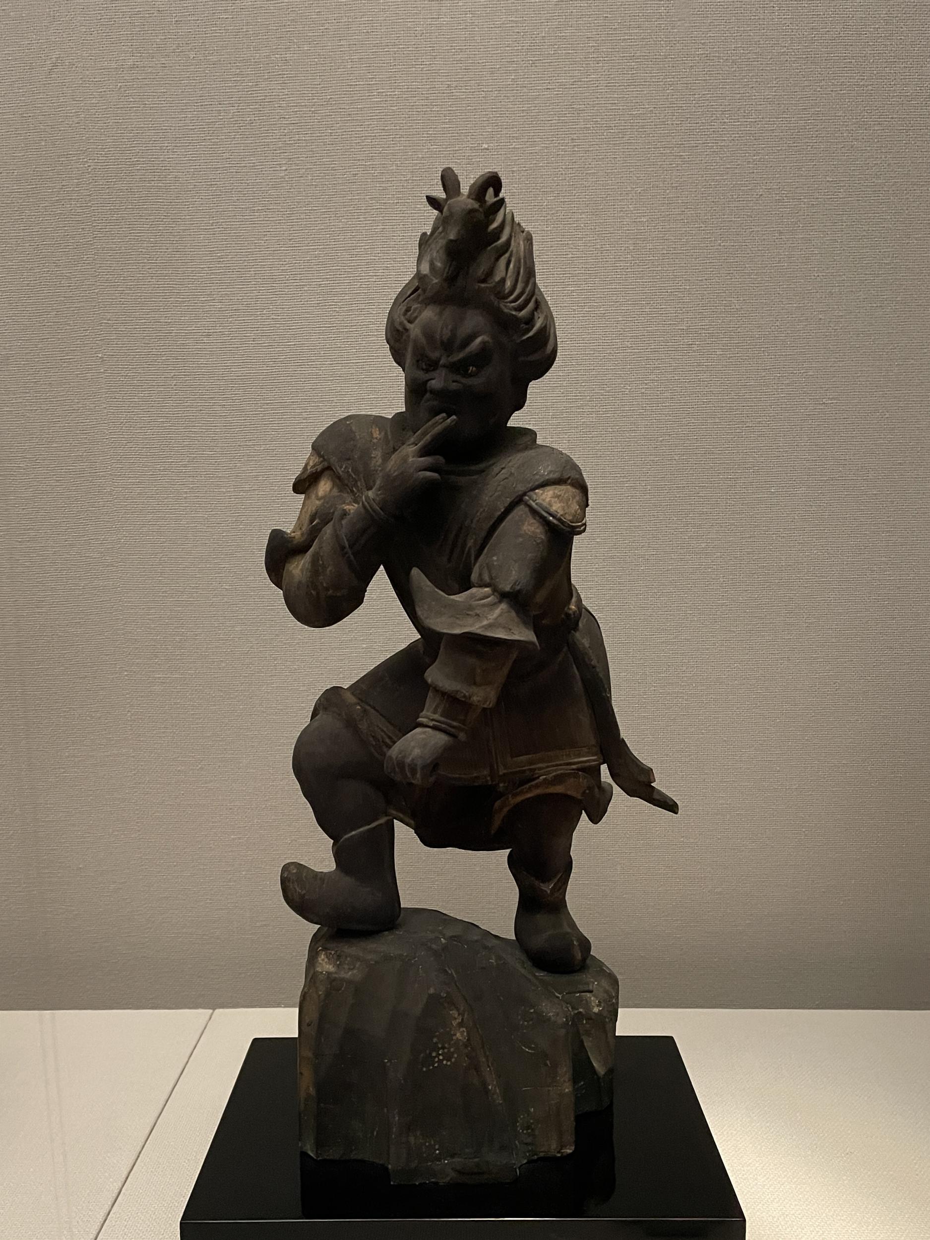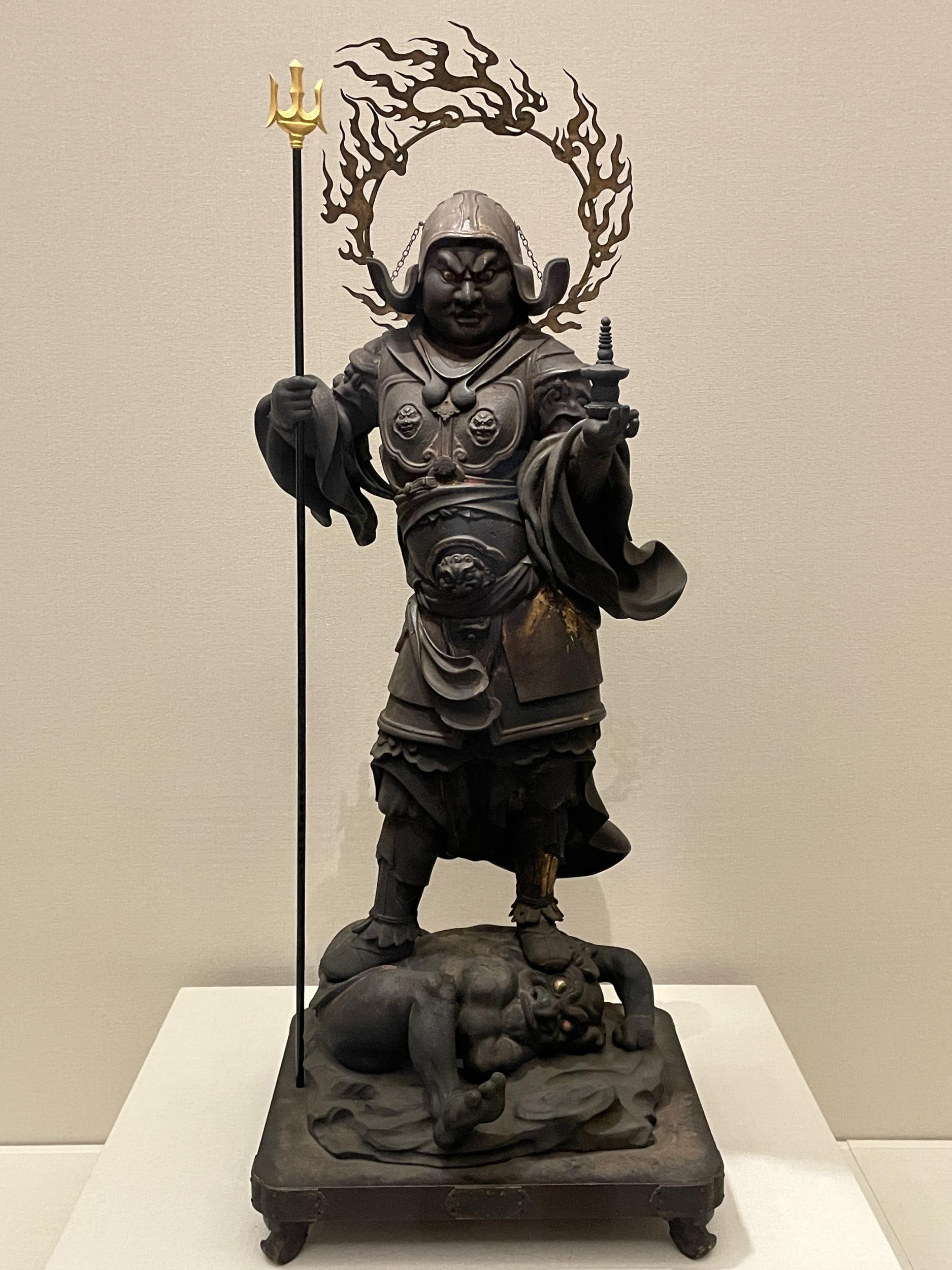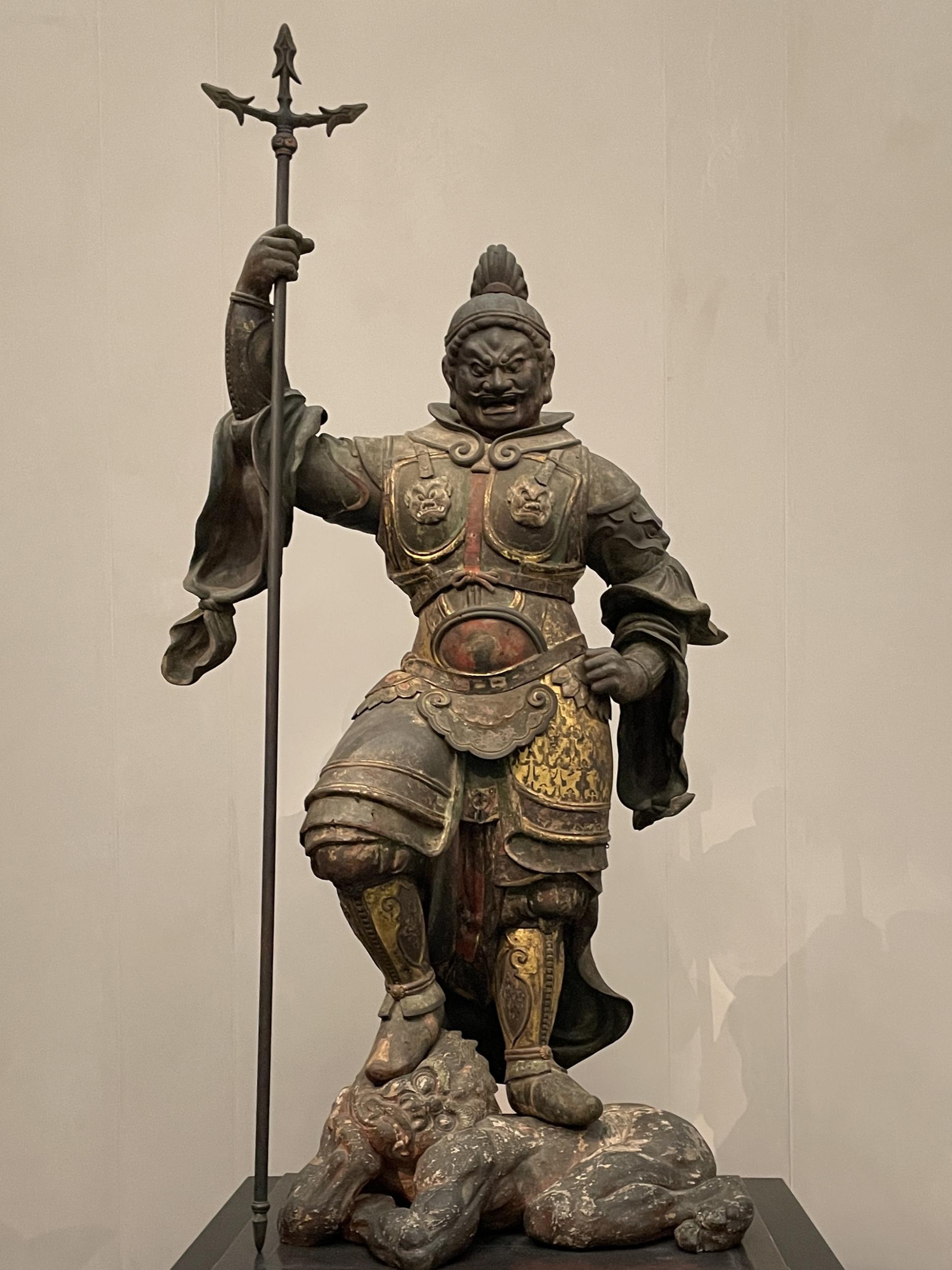 金峯山寺仁王門金剛力士立像の大きな展示室に重要文化財興福寺伝来の四天王像(平安〜鎌倉時代)、順に広目天、増長天、持国天、多聞天。明治39年まで興福寺に一具(セット)で伝来、増長天と多聞天は当館、広目天は興福寺、持国天はMIHO MUSEUM所蔵で四軀揃っての展示は28年ぶりとのこと。制作時期は11世紀〜13世紀の諸説あり、興福寺のどの堂宇に安置されていたかも特定されていないそうです。