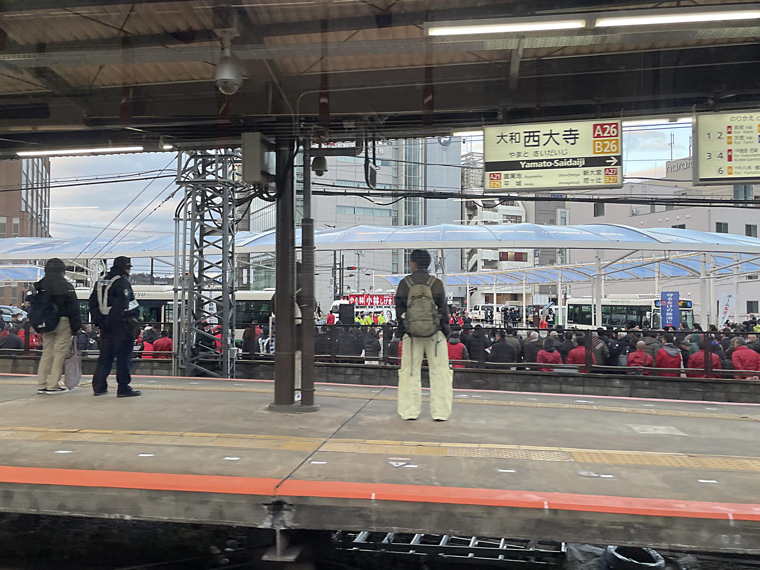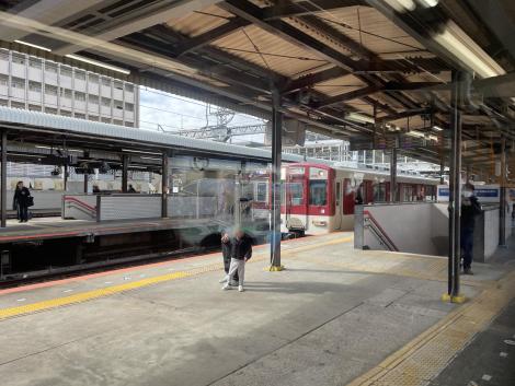 西大寺に到着すると1番線に京都線の奈良行急行が入線してきました。ひょっとしてと構内放送に注意していると1番線から奈良行急行が発車しますと聞こえ慌てて乗り換えたところです。京都線の急行が遅れていたのかと調べてみると12:05発着で定刻、乗ってきた奈良線快速急行は12:04着12:07発になってました。なぜ京都線を優先しているのかは不明。