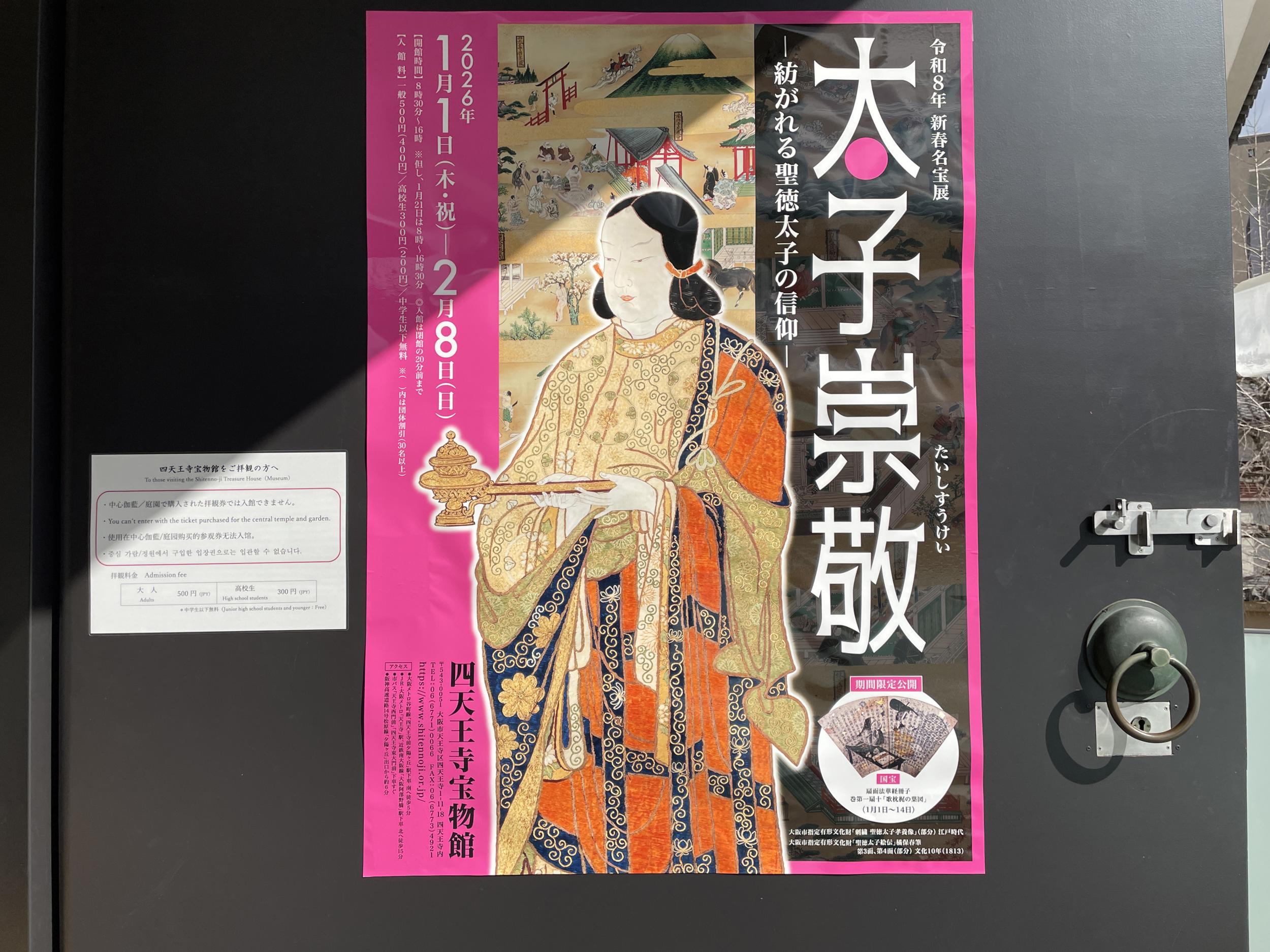 新春名宝展を開催中で聖徳太子ゆかりの国宝や重要文化財等々を展示、写真NGなのであまり覚えていいない中、国宝懸守桜折枝文が記憶に残ってます。5つの俵型の桜色の布包が桜の花びらの形に積まれた平安時代のお守り袋で、CTスキャンで内部に小さな仏龕が入っていることが確認され、その金色の3Dプリンター復元が並べられていました。