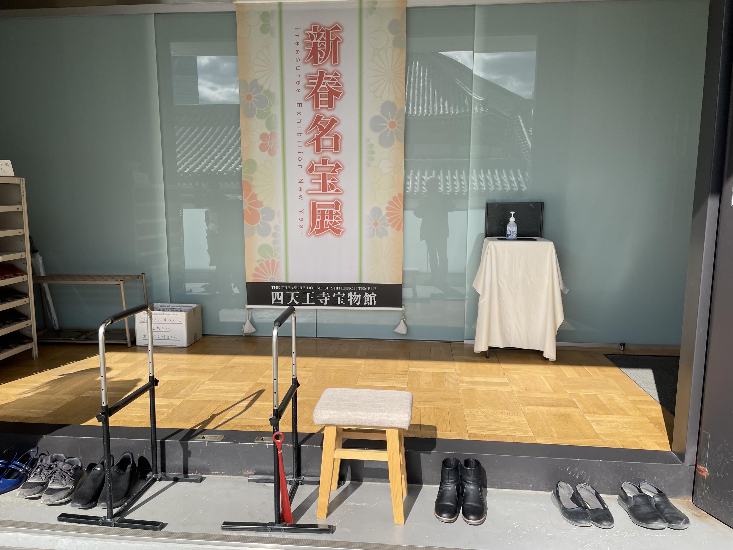 回廊で囲まれた中心伽藍の東側に宝物館、中心伽藍とは別に拝観料が必要と分かりちょっと躊躇していたのですが、通りがかった作務衣の女性に尋ねると、やはり四天王像が展示されていると分かり、靴を脱いでスリッパに履き替えました。