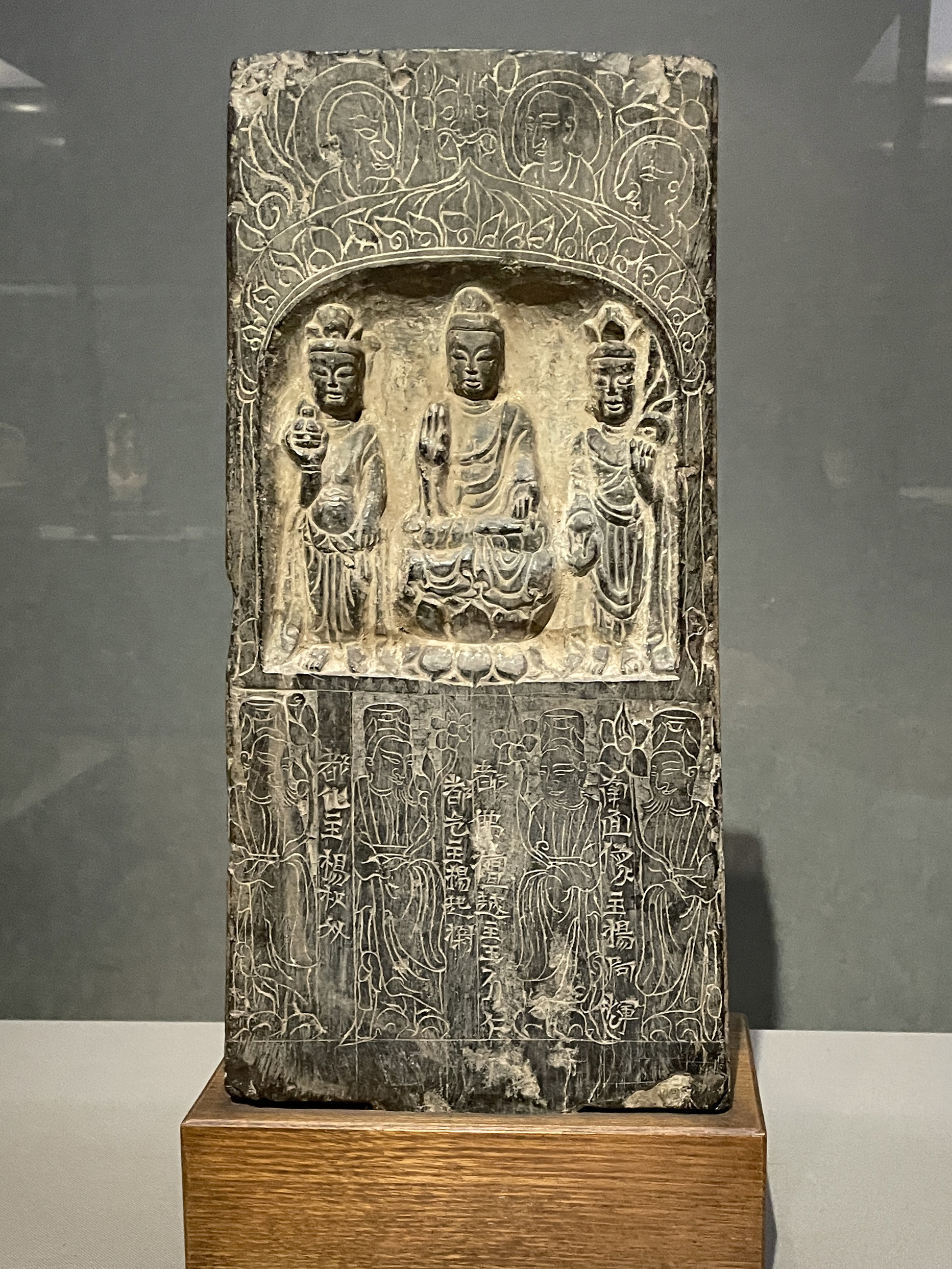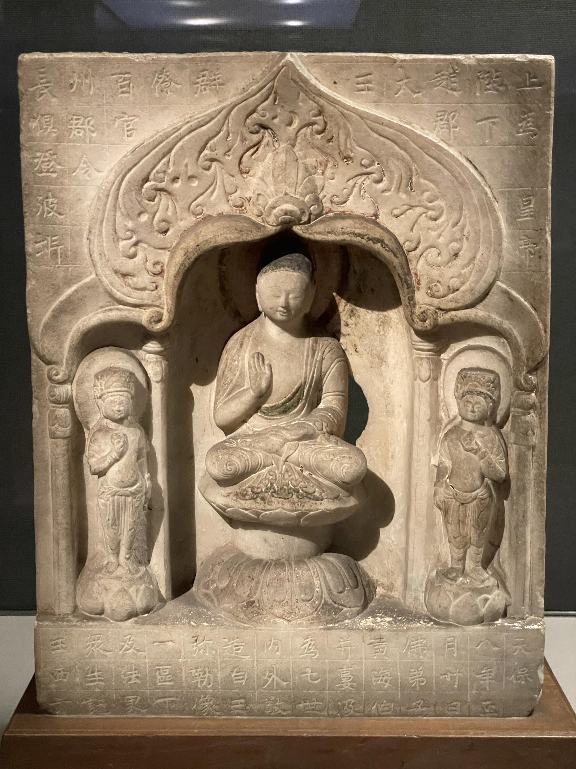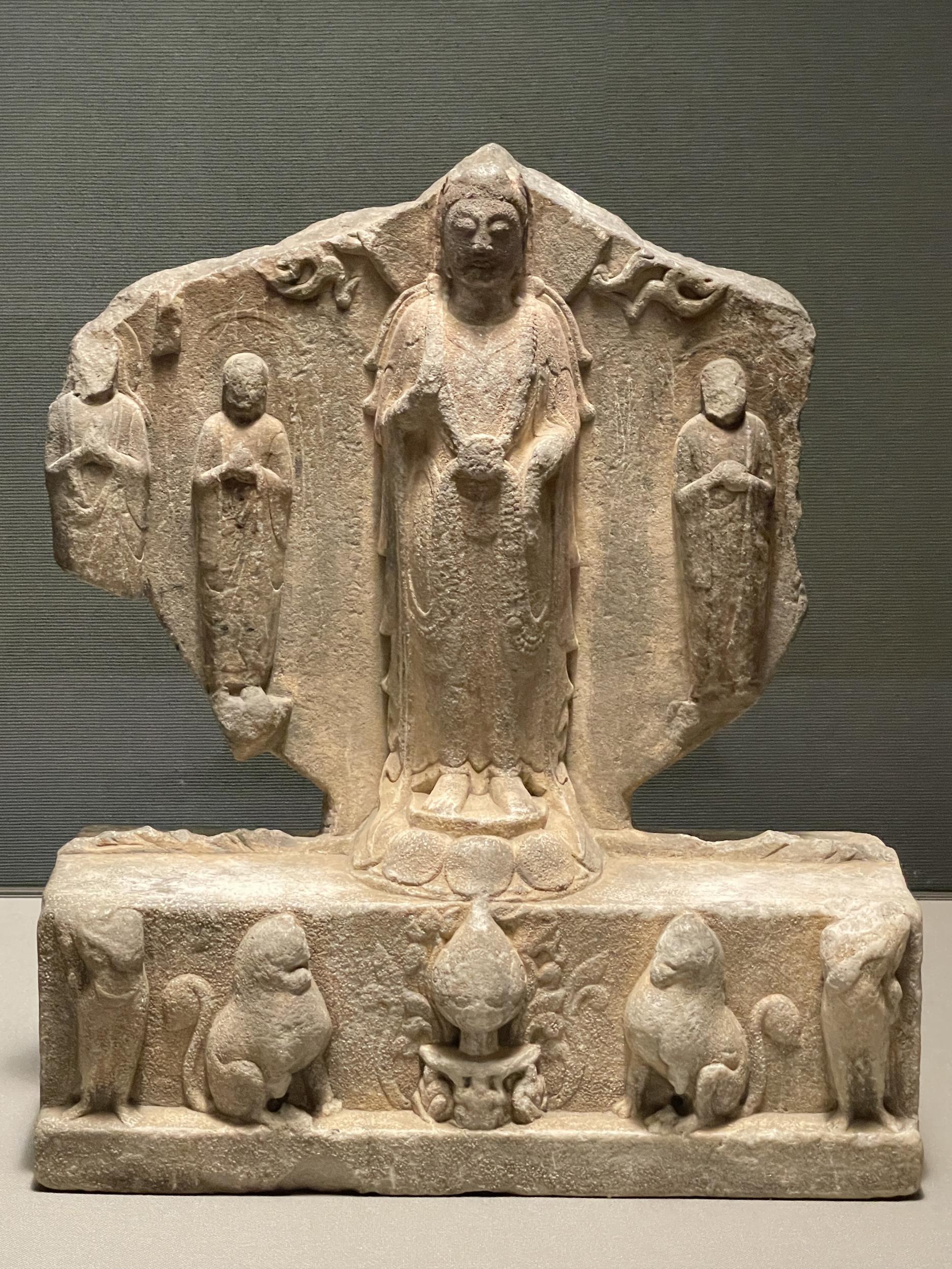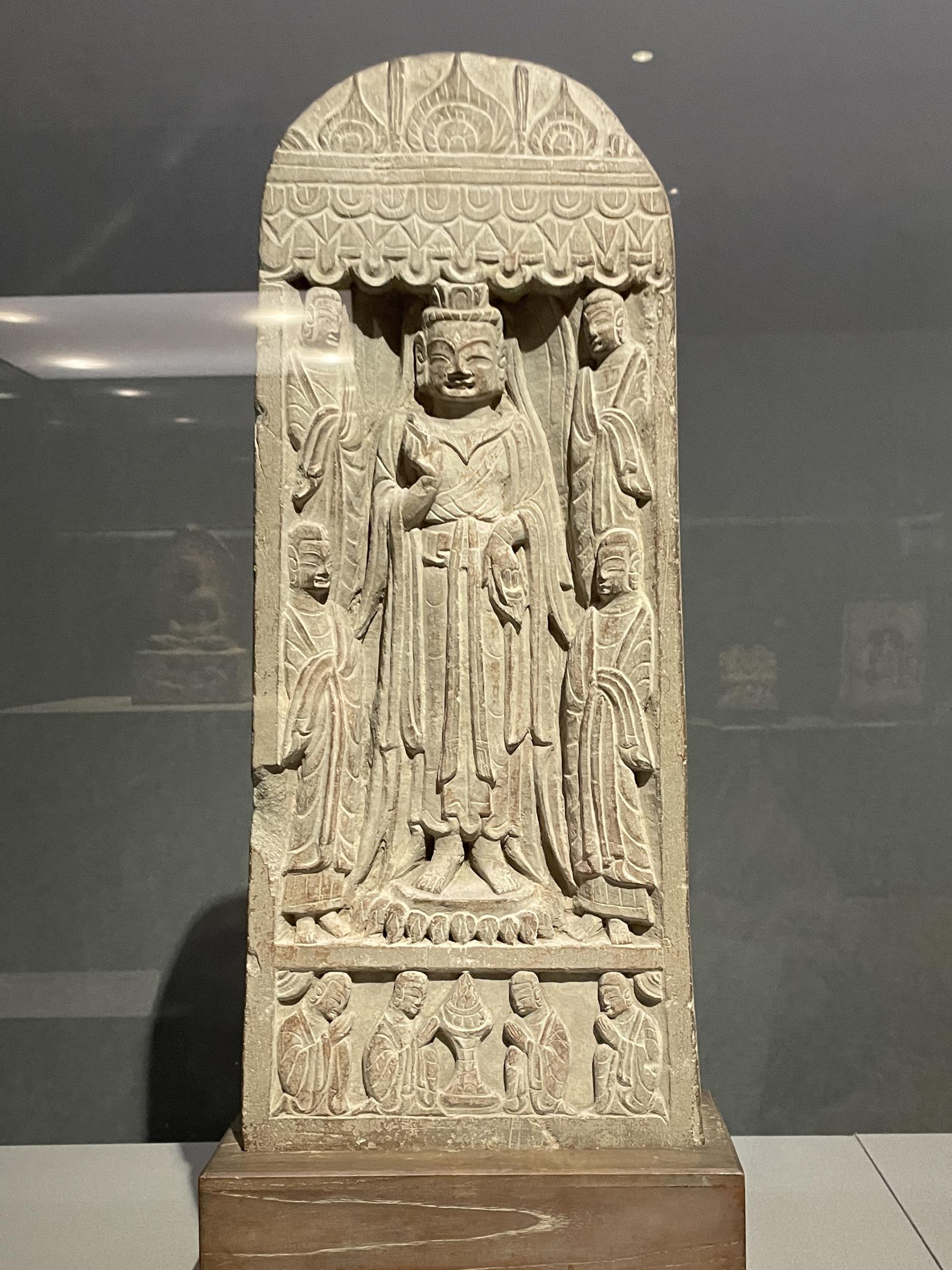 同じく北周の菩薩五尊像龕(保定5年・565年)、北周は中国の南北朝時代に北斉と華北を二分していた国家で、557年に北斉を滅ぼし、隋に受け継がれます。