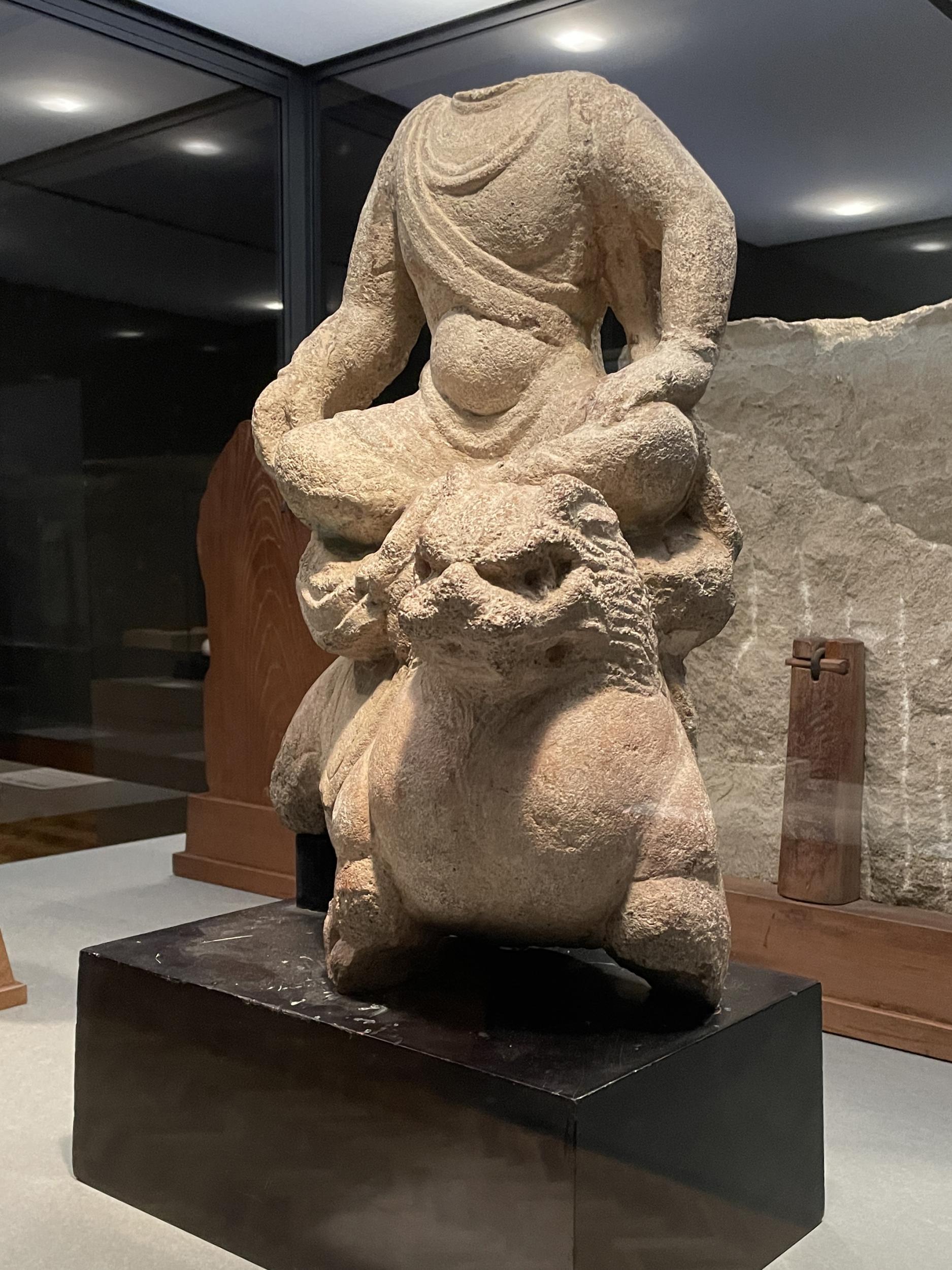 文殊菩薩騎獅像は伝天龍山石窟将来と「伝」が付いていて、シカゴ大学のデータベースには掲載されていません。獅子の上に座るお腹のでたがっしりした体型も首の無い像、獅子に座るのは文殊菩薩と決まっているらしい。