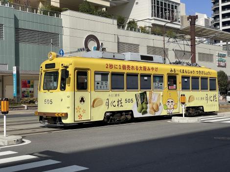 続いて501形。広電のおしゃれな広告電車をいっぱい見たばかりなのでダサさが際立ちます。撮りそびれたのですが続いてやってきた最新の1101形もスタイリッシュな低床車体が紺地にデカデカと黄色の明朝体で埋め尽くされていてビックリ。いずれも広告主が悪いんじゃなくて、町の美観を守りイメージアップにつながるような適切な広告基準が阪堺電車に無いことが問題かと。モ161形も稼働しているのはついに2両が残るのみとなりほぼ貸し切り専用、阪堺電車にはぜんぜん惹かれなくなってしまいました。