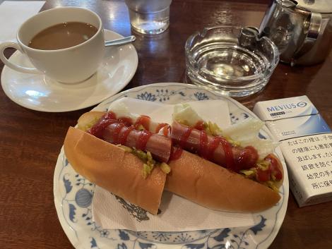 あべの筋沿いのタバコの吸える喫茶店でホットドッグ、コンビニでも同様の内容で500円弱なので、これで850円はいたしかたないか。
