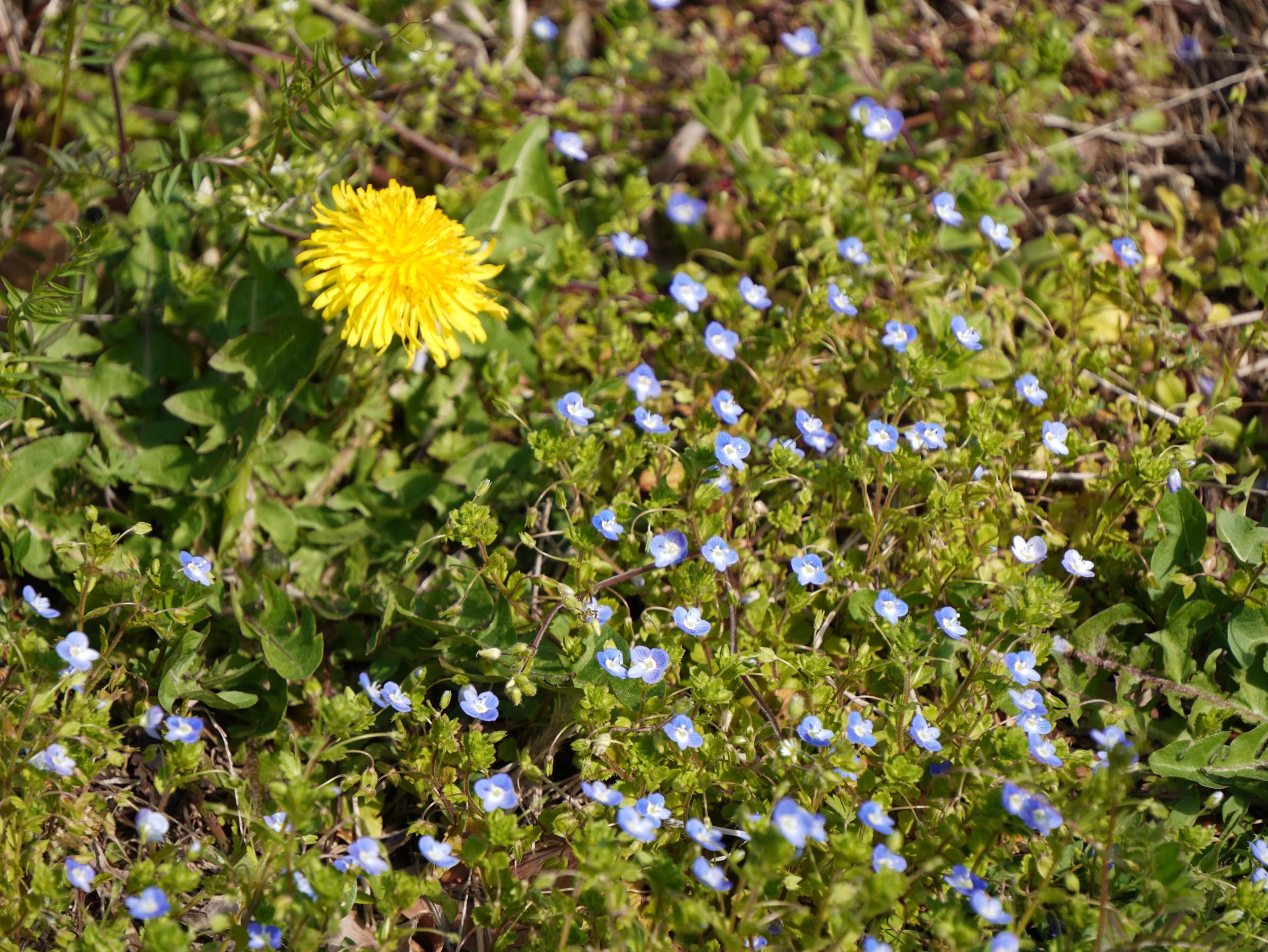 踏切を渡るの田んぼに先週は会えなかったレンゲ。