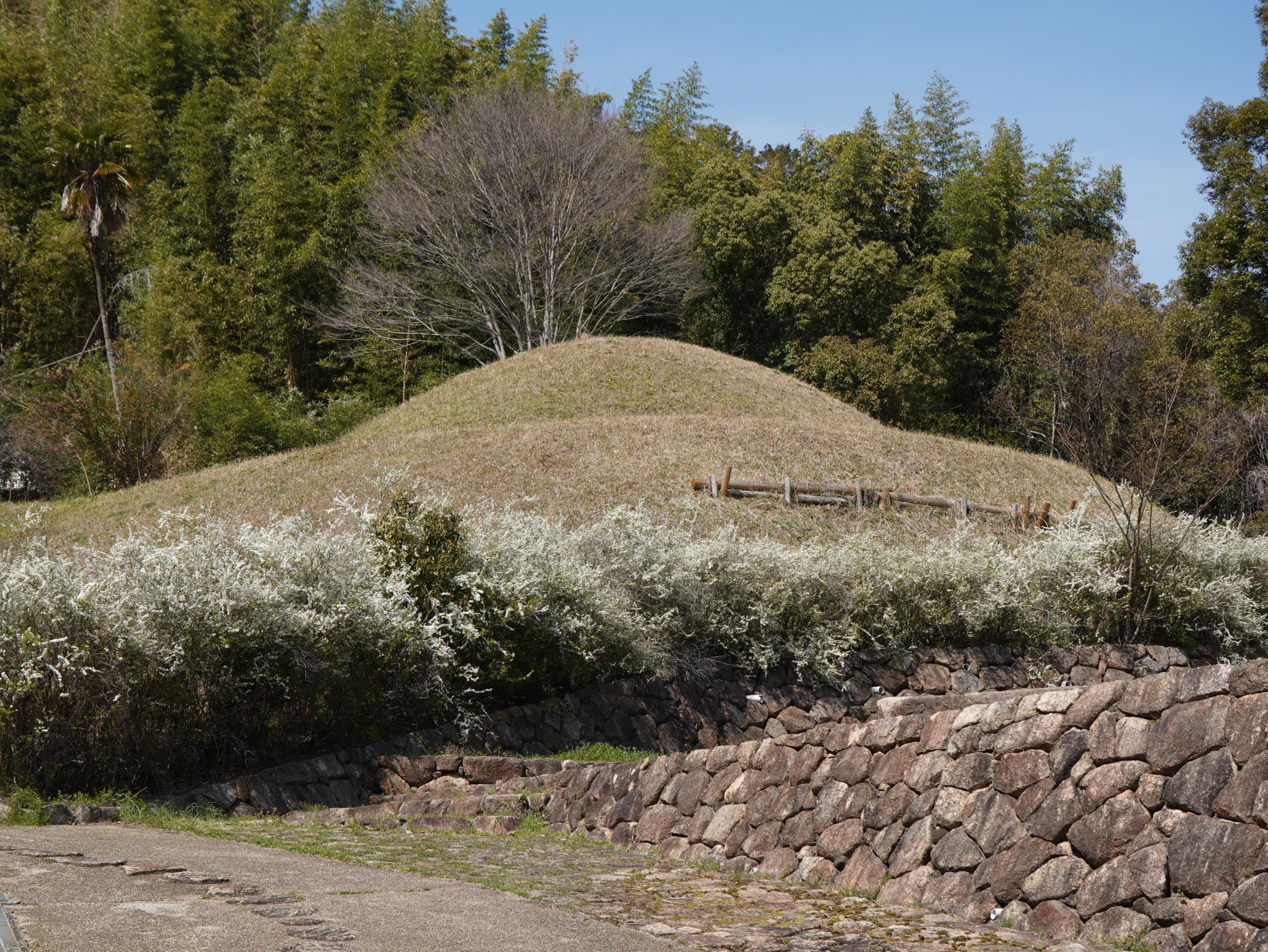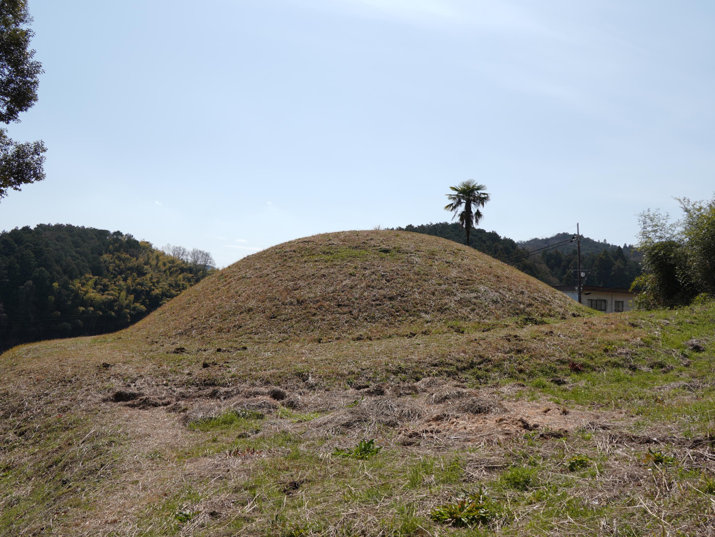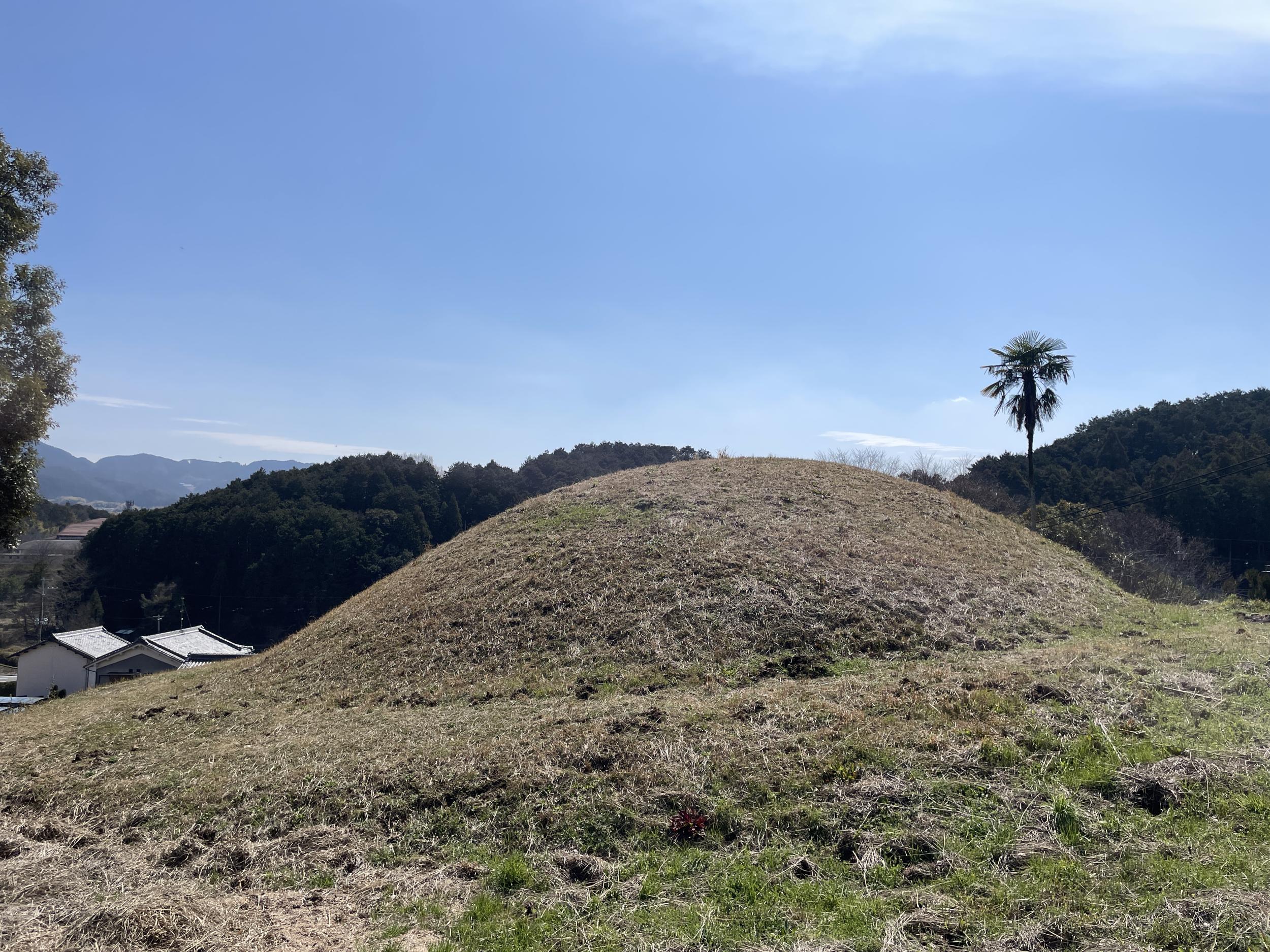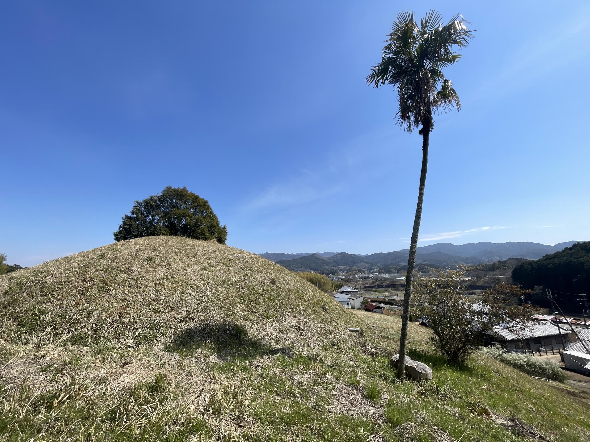 ぐるっと回ってみたものの石室入口は見当たらず埋められているようです。シュロの木が1本、古墳を守るように立っているだけ。